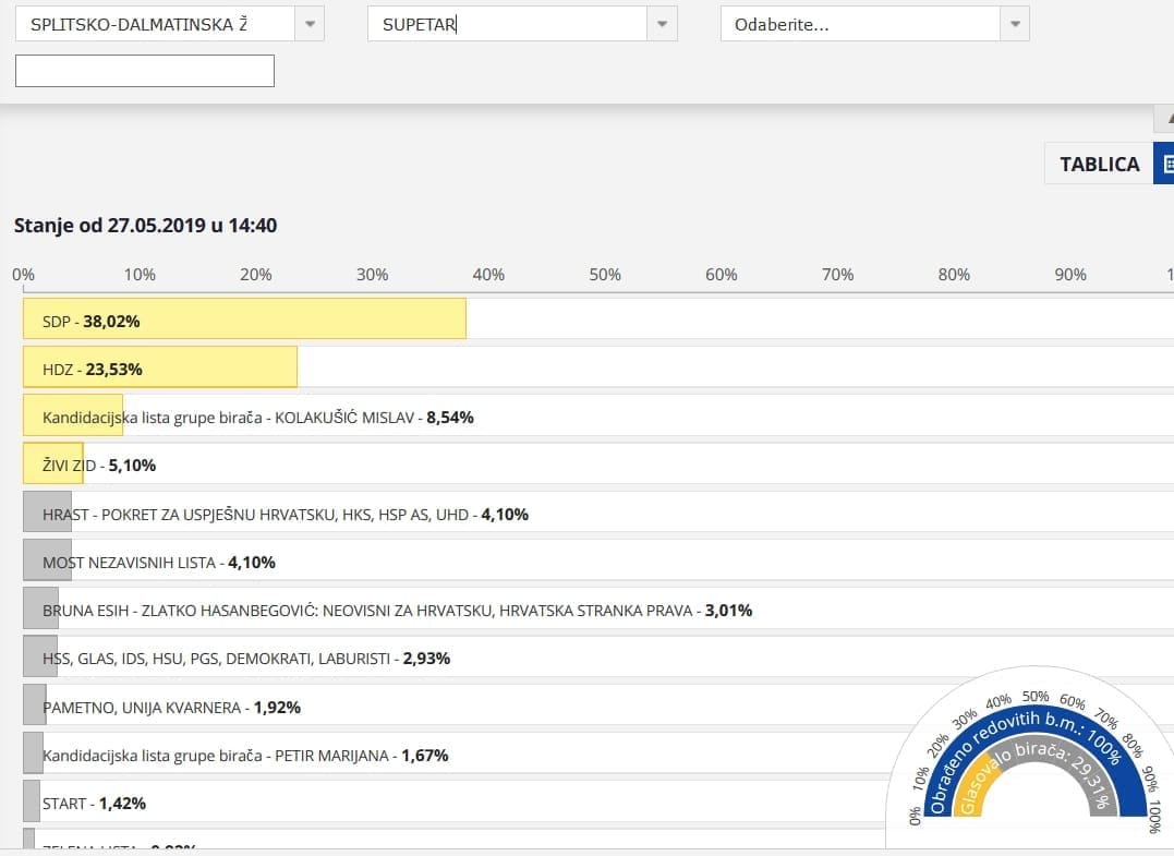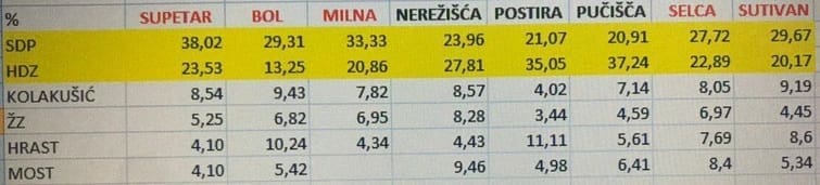 SDP je na Braču dobio ukupno 1284 glasa, a HDZ 1114 glasova.