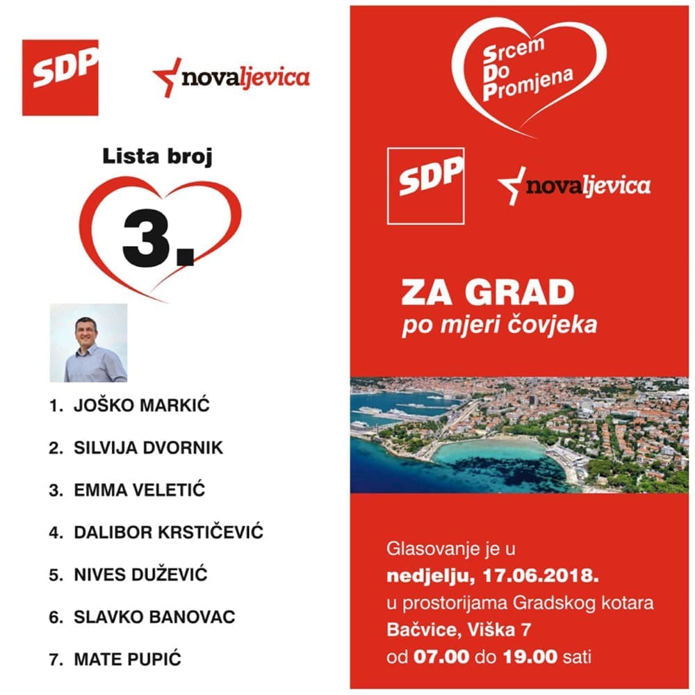 Stoga podržite listu broj 3 (SDP i Nova ljevica) na kotarskim izborima u nedjelju u prostorijama Gradskog kotara Bačvice (Viška 7) od 7 do 19 sati.