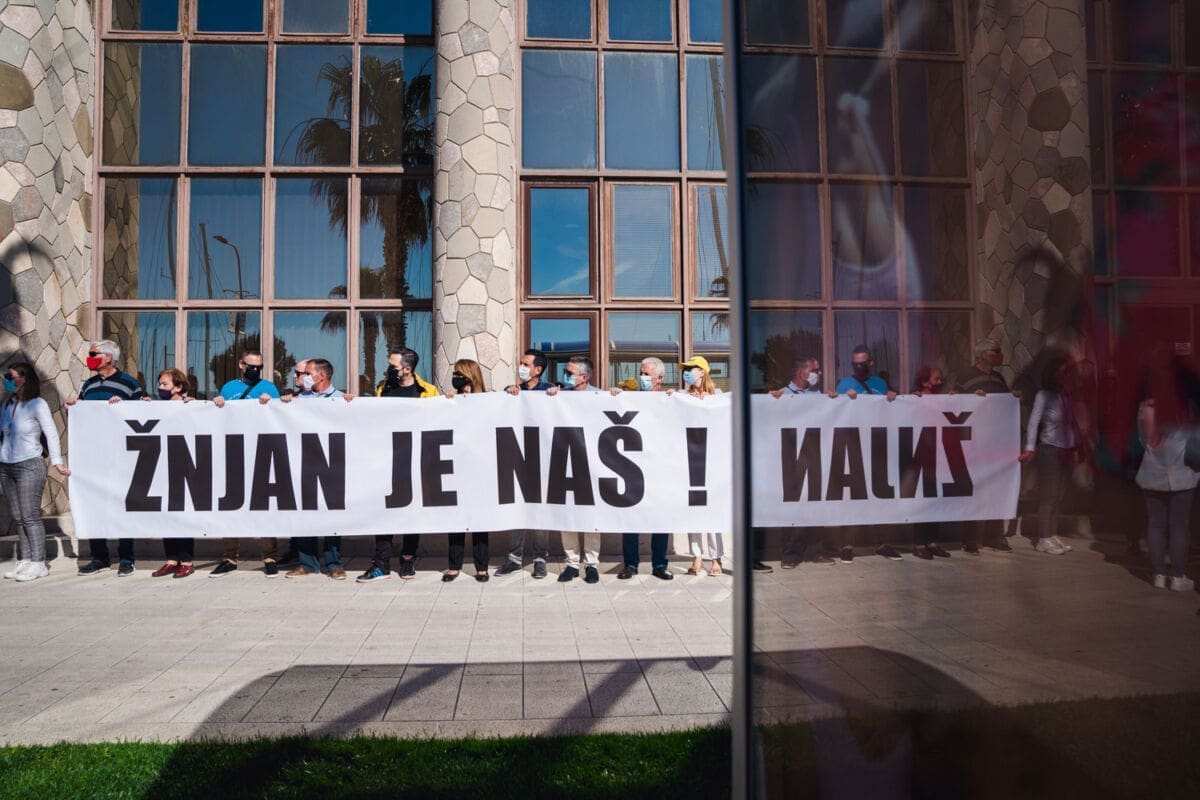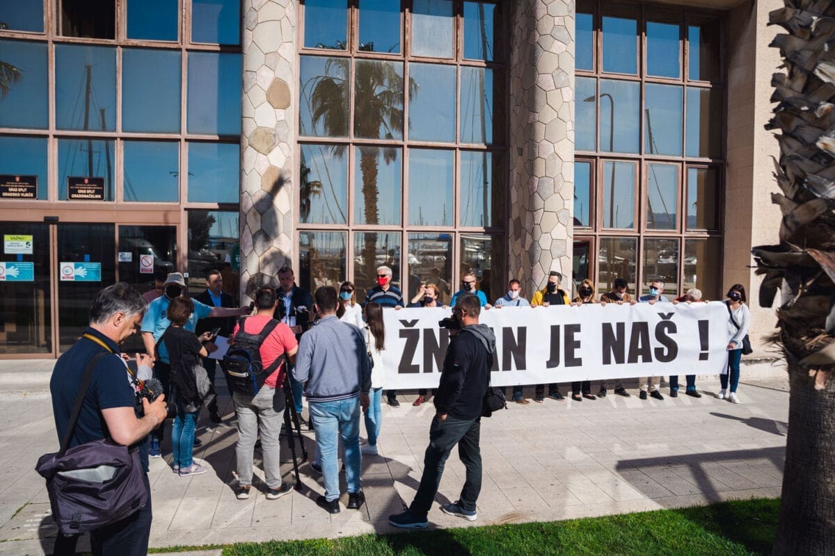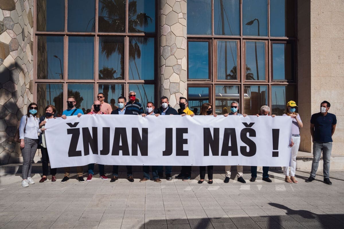 Kandidatkinje i kandidati s liste SDP-HSU predvođeni kandidatom za gradonačelnika Antom Franićem jutros su prosvjedovali ispred Banovine, kako ističu, protiv gubitka koncesije na pomorsko dobro na plaži Žnjan od strane splitske gradske tvrtke i dobivanja koncesije na Žnjan na 40 godina od strane privatnika, i to nakon što je Grad uložio milijune na privremeno uređenje Žnjana.