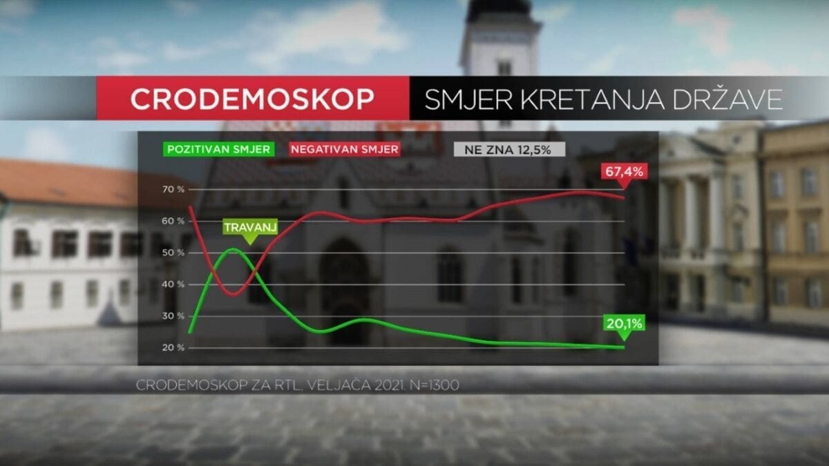 U veljači gotovo 67,4 posto ispitanika smatra da idemo u progrešnom smjeru dok 20,1 posto smjer ocjenjuje dobrim.