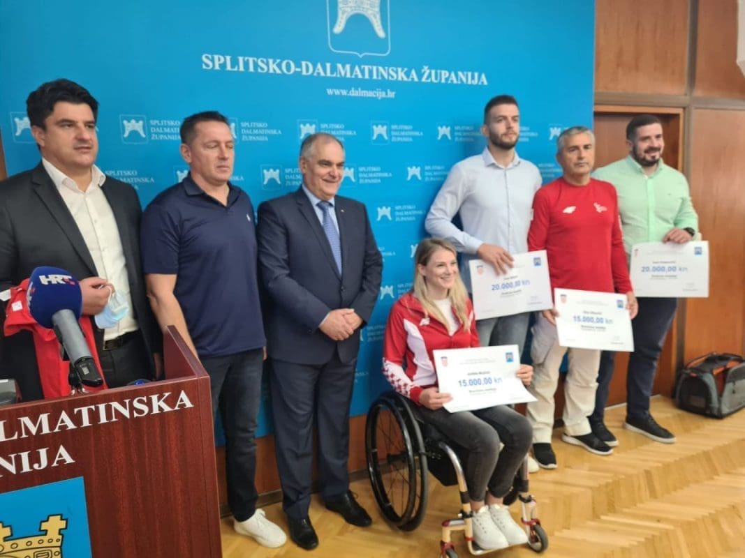 Splitsko-dalmatinska županija nagradila je osvajače medalja na Parolimpijskim igrama jednakim iznosima koje su primili i osvajači medalja na Olimpijskim igrama u Tokiju, dakle za zlato 25 tisuća, za srebro 20 tisuća i za brončano odličje 15 tisuća kuna.