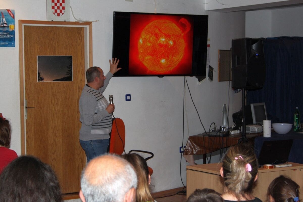 Središnji dio programa je ipak pripao astronomiji. Znanstveno-popularno predavanje pod nazivom "Nebeska tijela - opći pregled od Sunčeva sustava do ruba vidljiva svemira", održao je dipl. ing. Damir Hržina, gost Zvjezdanog sela iz Zvjezdarnice Zagreb. Unatoč slaboj naoblaci i visokoj vlažnosti zraka, zbog koje se na optici instrumenata hvatao kondenzat, program je prema najavi okončan astronomskim promatranjem neba s terase zvjezdarnice. Korištena su dva manja reflektorska teleskopa i jedan refraktor, a promatran je isključivo Mjesec, jedini dovoljno sjajni objekt te večeri.
