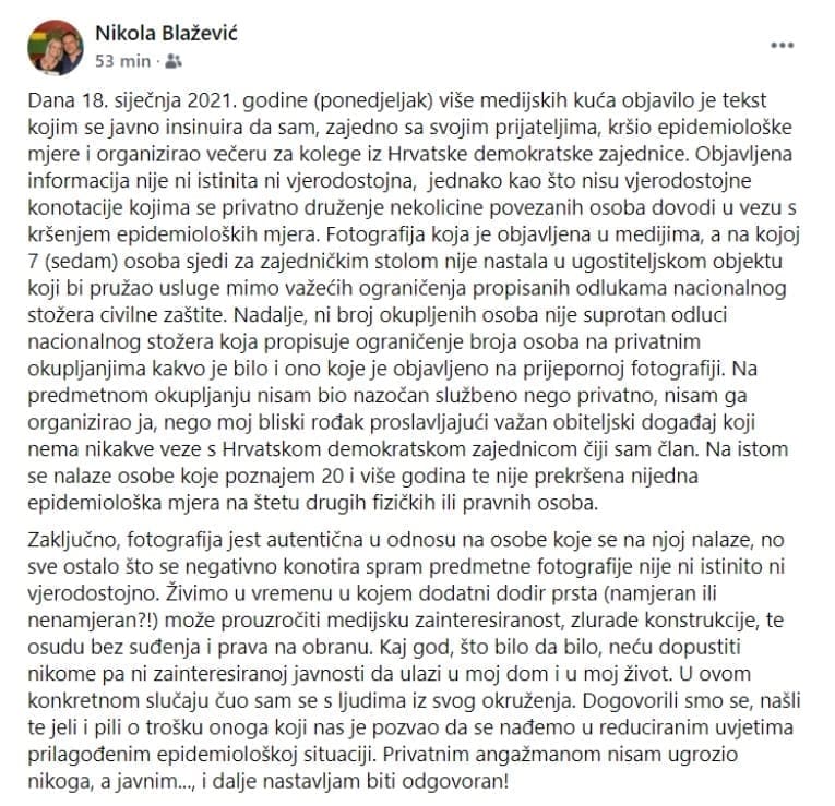 Podsjetimo, Blažević je na Facebooku pisao da se radi o "zluradim konstrukcijama".