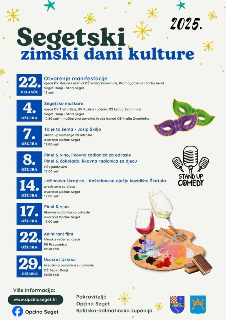 Seget ove zime postaje pravo kulturno središte zahvaljujući manifestaciji Segetski zimski dani kulture, koja donosi raznolike sadržaje za sve uzraste. Program je započeo u veljači, a bogati kulturni događaji nastavljaju se i tijekom ožujka.
