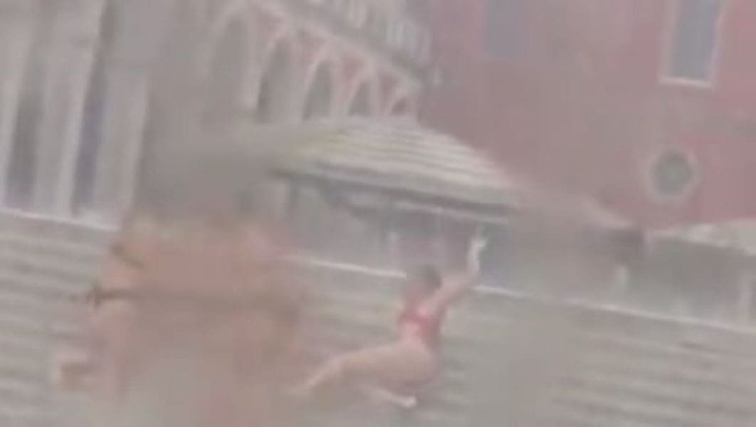 Naime, video koji nam je danas stigao na redakcijski mail (info@dalmacijadanas.hr) prikazuje skupinu cura koje se u kupaćem kostimu zabavljaju i poziraju na Prokurativama. Dok ih je kipa zalijevala, one su imale sexy preformans.