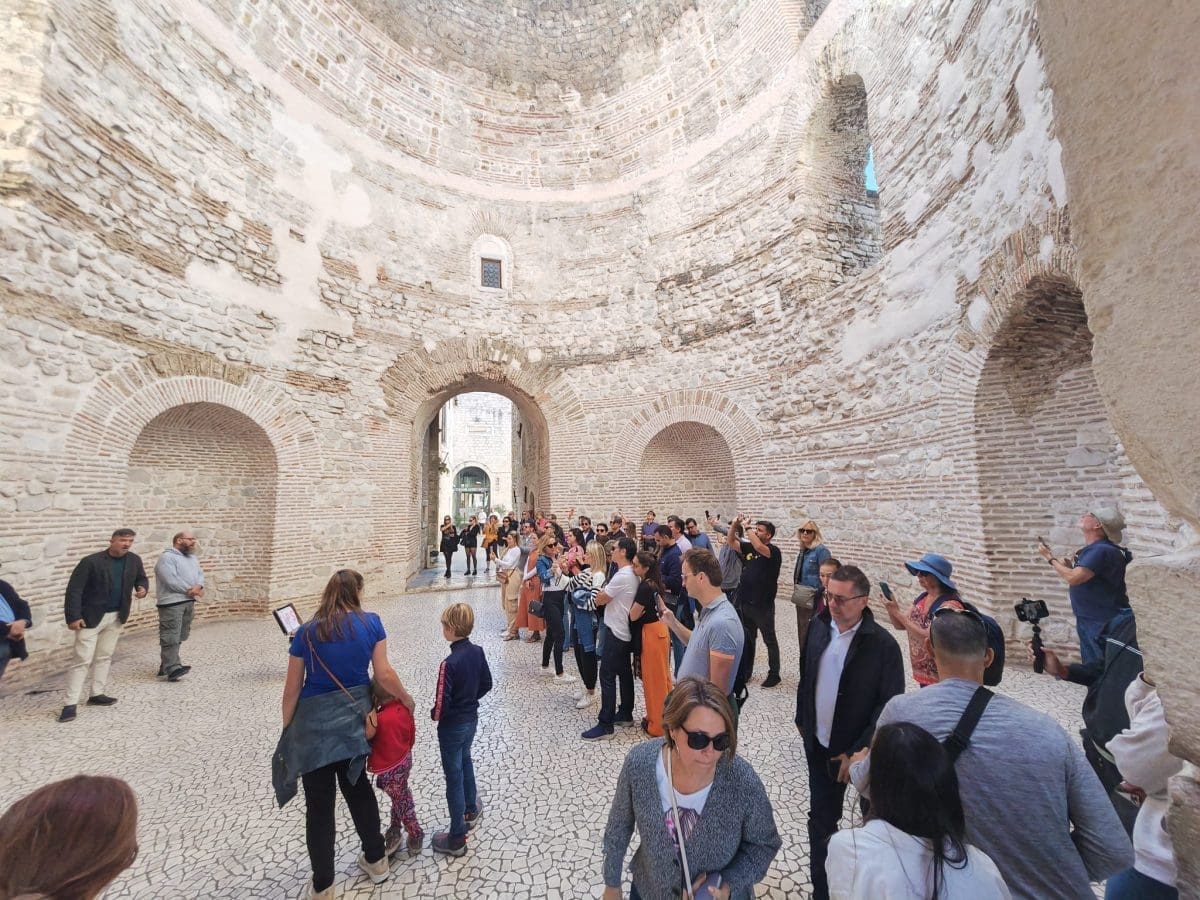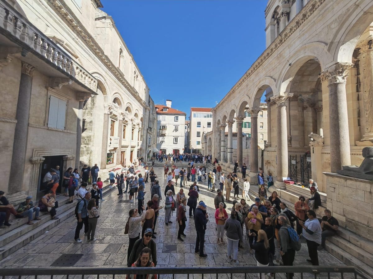 Živo, živo - tako bismo mogli opisati prijepodne na splitskome Peristilu. Dupkom ispunjen turistima iako je već sredina listopada, ovo je još jedan dokaz da sezona u gradu pod Marjanom ne traje samo u ljetnim mjesecima već i nakon njih.