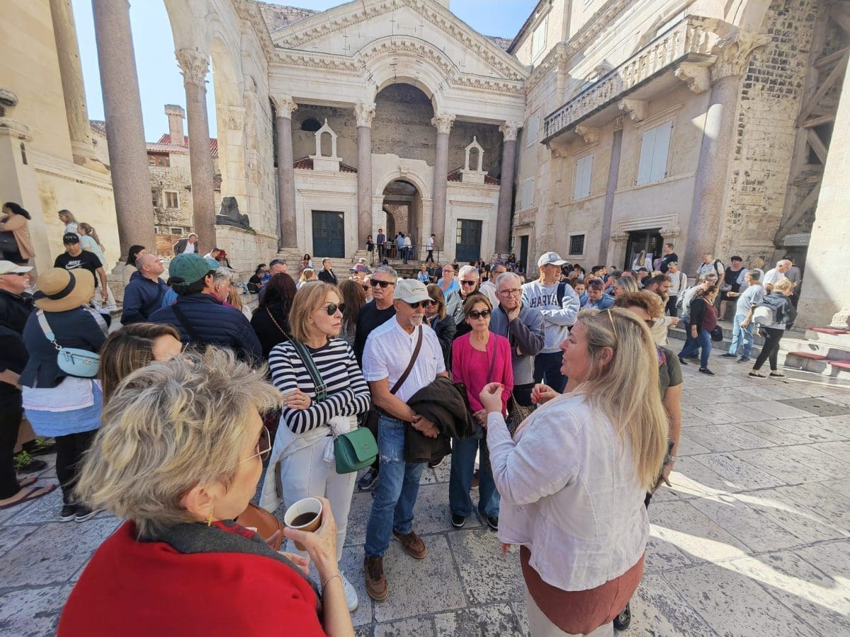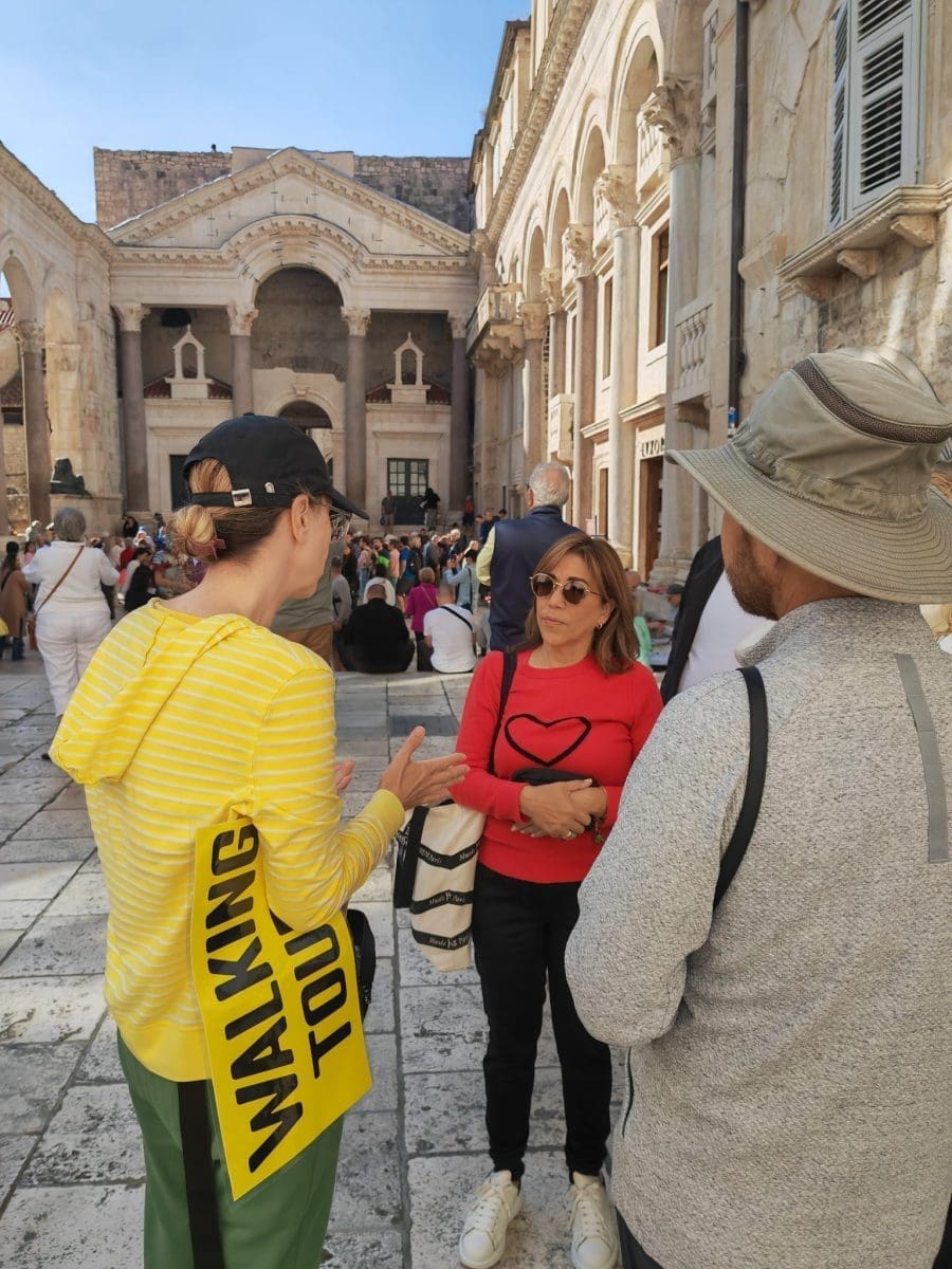 Nastojim da svima njima obilazak bude zanimljiv, prvo ih naučim ih da se Hrvatska kaže Hrvatska, a ne Croatia, a potom krenem o povijesti Splita, palači.