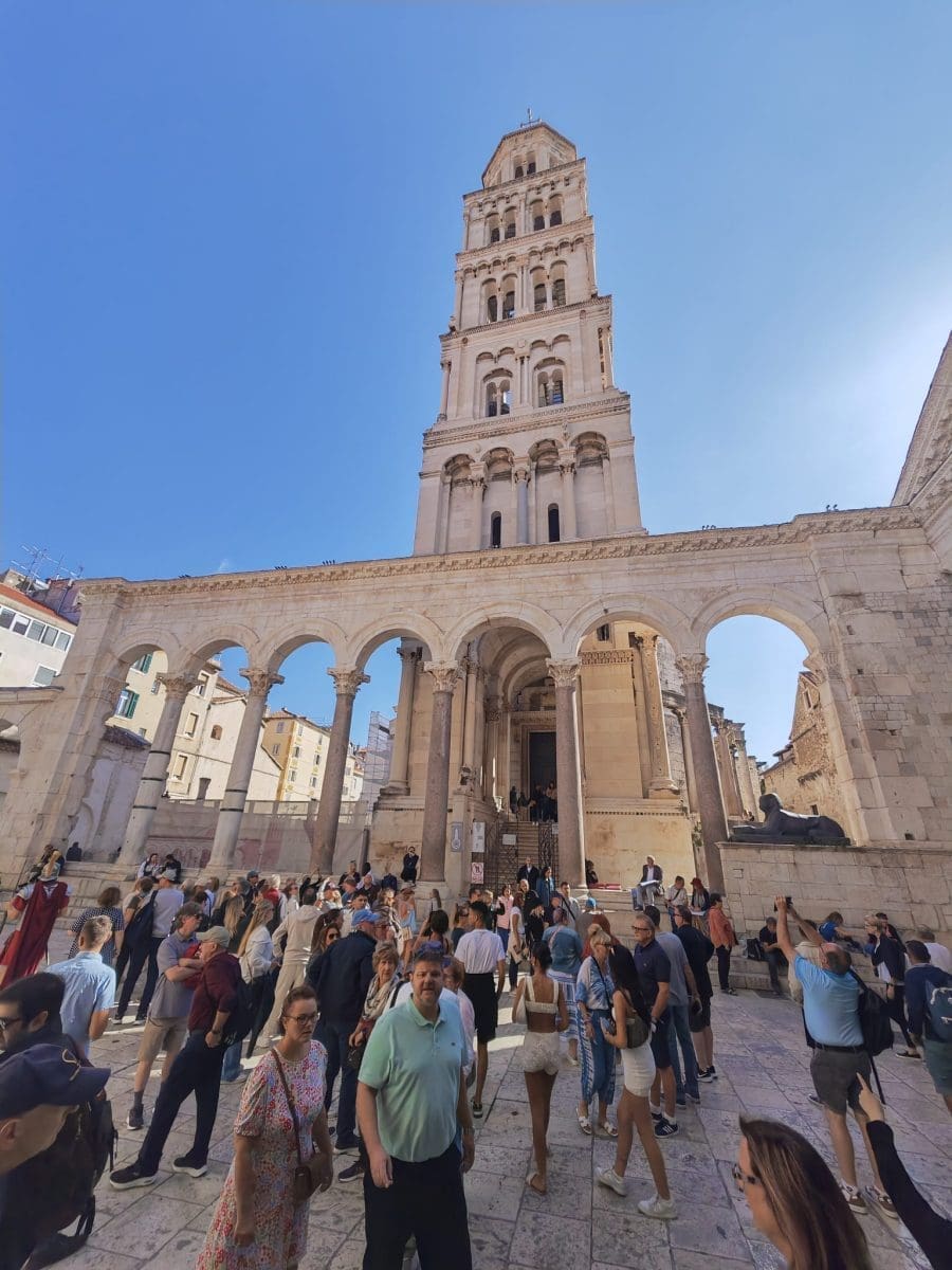 Turisti, u grupama s vodičima ili bez njih, divili su se zdanjima Dioklecijanove palače. Fasiniraju ih, kako kažu sfinge na ulazu u katedralu Svetog Duje, nenadmašan i neporcijenjiv pogled s zvonika, Vestibul, ali i sama gradnja svega unutar palače.