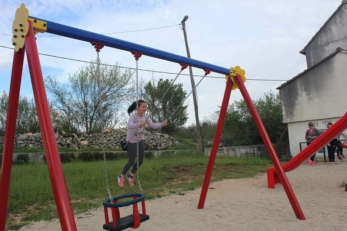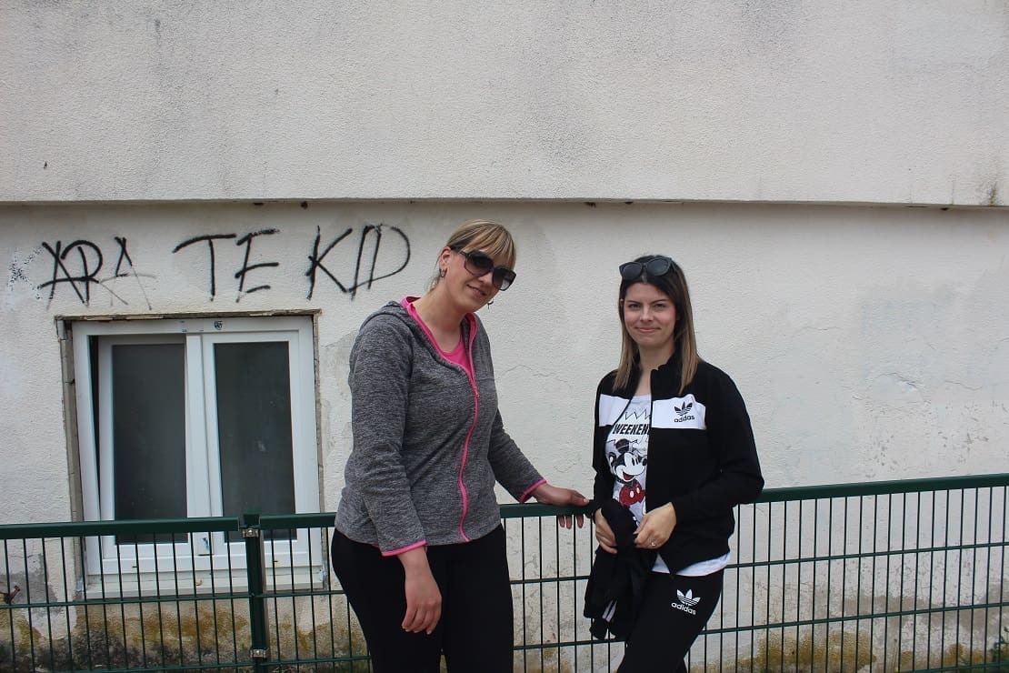 Pred školom snimili smo njegovu suprugu Dinu te Ivanu Despotušić, suprugu Ivanova brata, s djecom koja su se ovdje igrala.