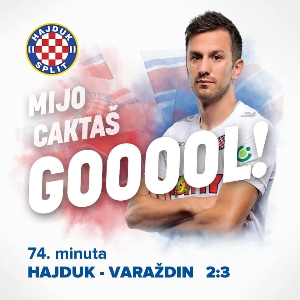 Dok je drugi pogodak za Hajduk pripao Caktašu u 74. minuti. Hajduk je time došao do rezultata 2:3.