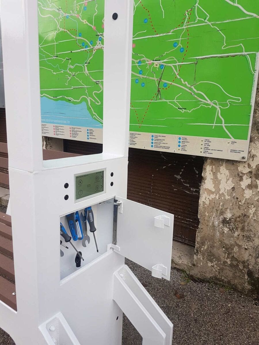 Pametna klupa namijenjena za bicikliste ima niz funkcija. Prvotno služi za servis bicikla pa tako sadrži kompresor i alat namijenjen za popravak bicikala i punjenje električnih bicikala strujom, a ima i ugrađene senzore za prikupljanje i analizu podataka o broju bicikala, operativnosti različitih komponenti i atmosferskim uvjetima. Nadalje, ima besplatan Wi-Fi sustav koji se automatski spaja na internet stanicu TZ Šestanovac, a služi i kao noćna rasvjeta.