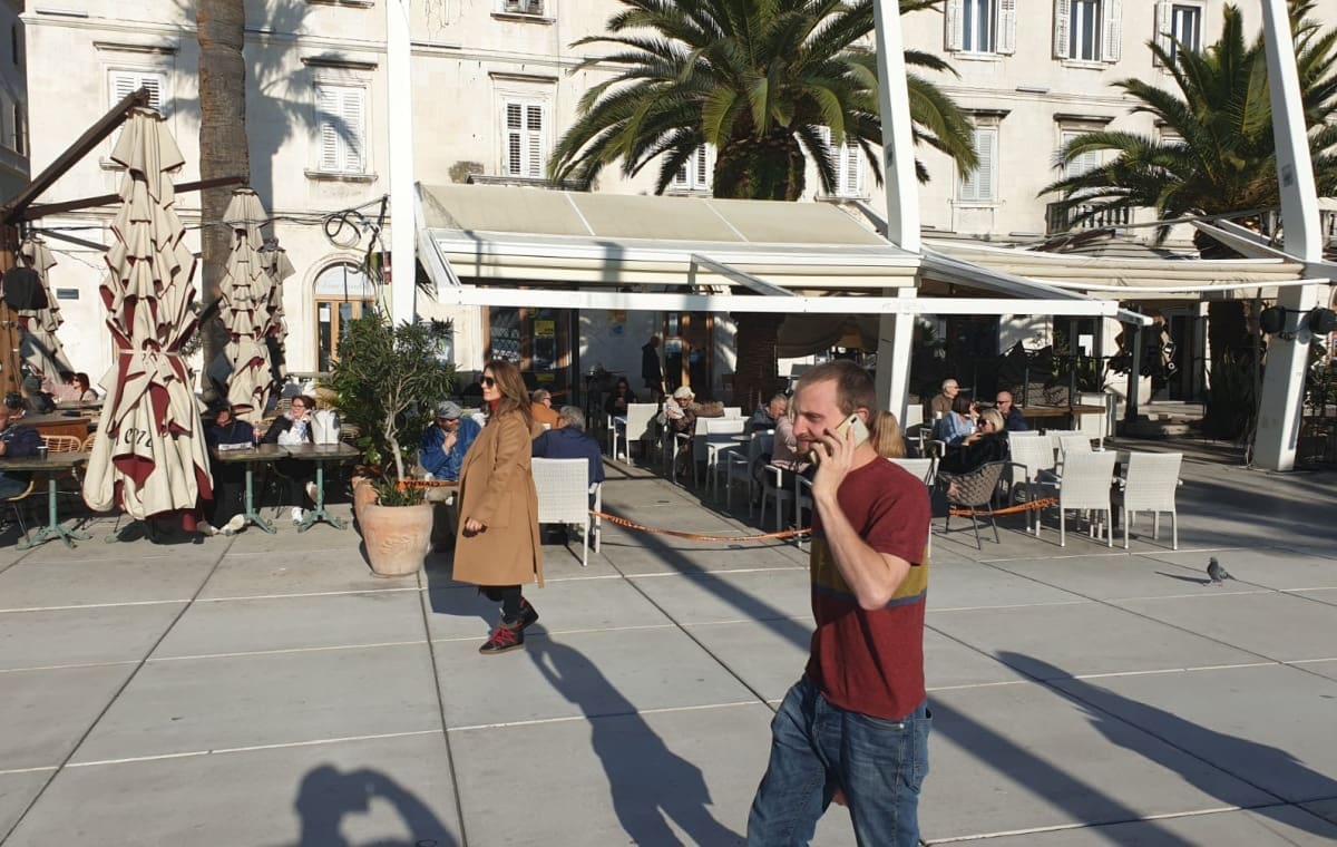 Nakon hladnog jutra Splićani su se odlučili ugrijati na suncu, a sudeći prema kadrovima sa splitske Rive, mnogi se ne žele odreći ispijanja kave.