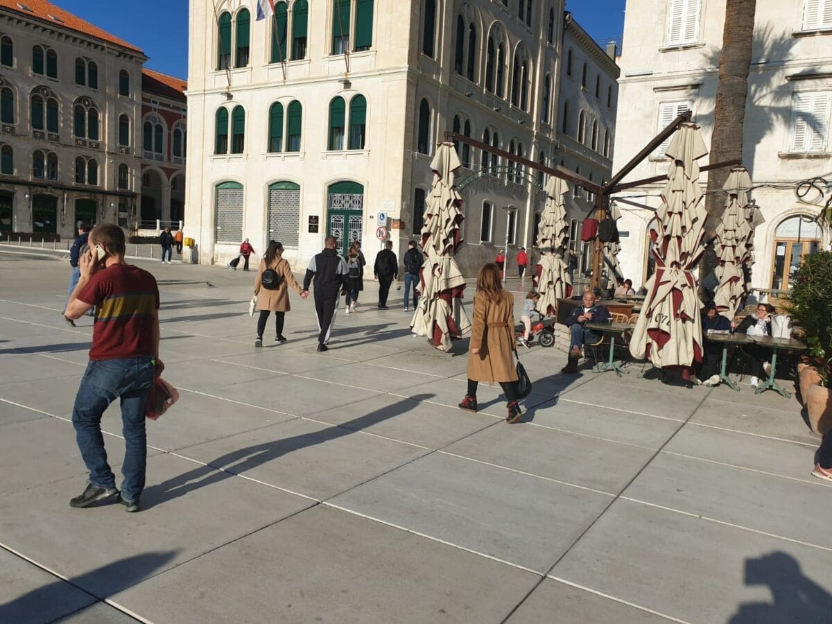 Međutim, traka se nalazi na podu, a Splićani pronalaze kavu za vani i sjednu na neki od štekata gdje je danas nastala poprilična gužva.