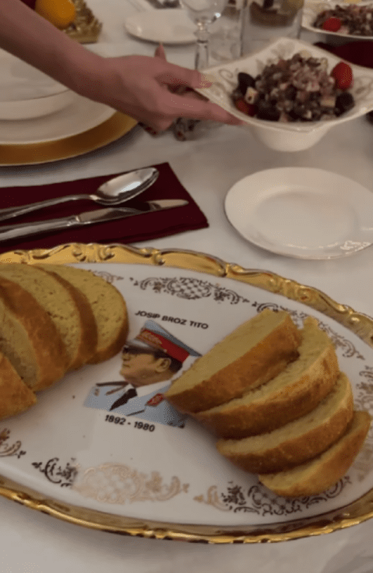 Posebnu pažnju ukrao je oval sa slikom Josipa Broza Tita na kojem je Severina služila kruh. "Josip Broz dobar skroz", šalili su se u komentarima.