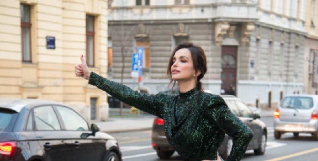 Popularna Seve u samom centru Zagreba pozira u šljaštećoj haljini zelene boje. Uz stihove svoje pjesme "Paloma nera" je još jednom ostavila bez riječi sve svoje obožavatelje koji su je 'zasuli' komplimentima.