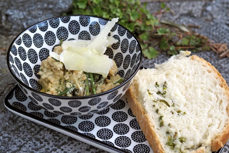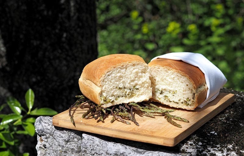 Priprema: Zamijesiti klasično kruh, na kraju u tijesto dodati svježe šparoge, staviti u namašćeni protvan i peći sat vremena na 180 stupnjeva.