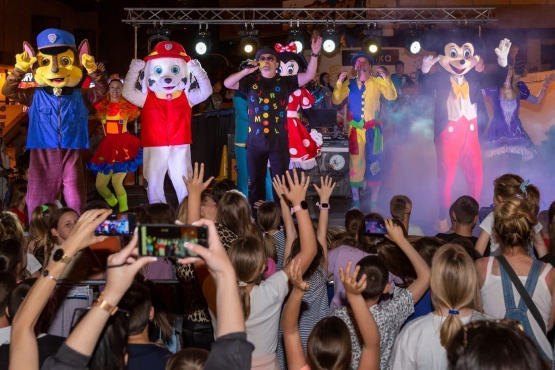 U već uzavreloj atmosferi djeca su jedva dočekali zvijezde večeri, vokalno-plesnu skupinu za djecu "Čarobni animatori", klauna Šarenka i njihove specijalne goste, maskote iz crtanih filmova.