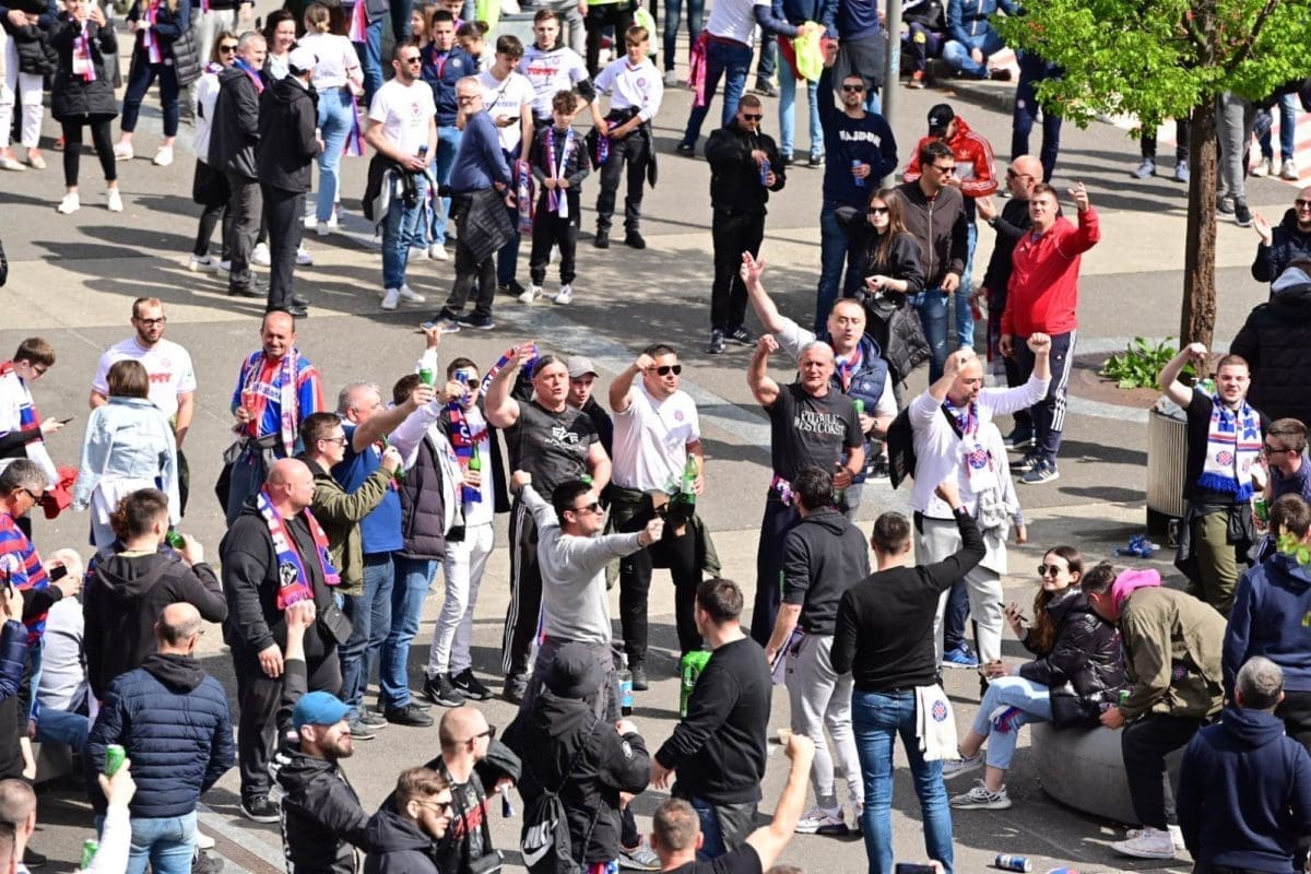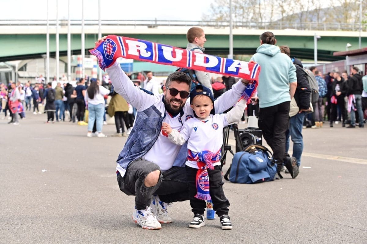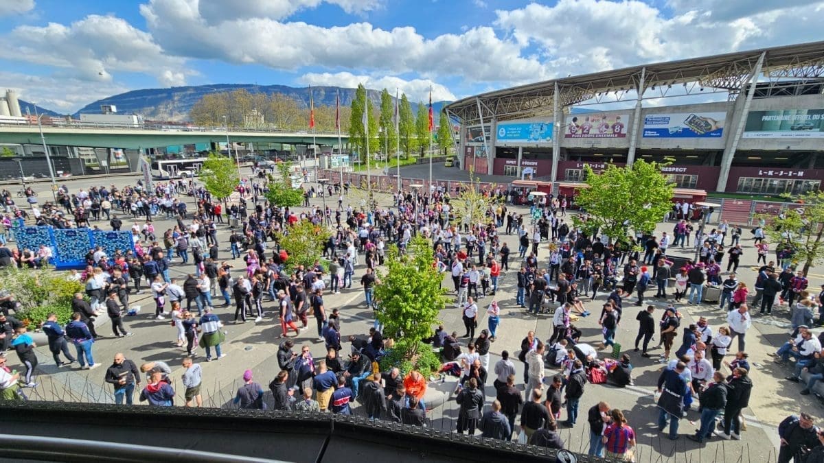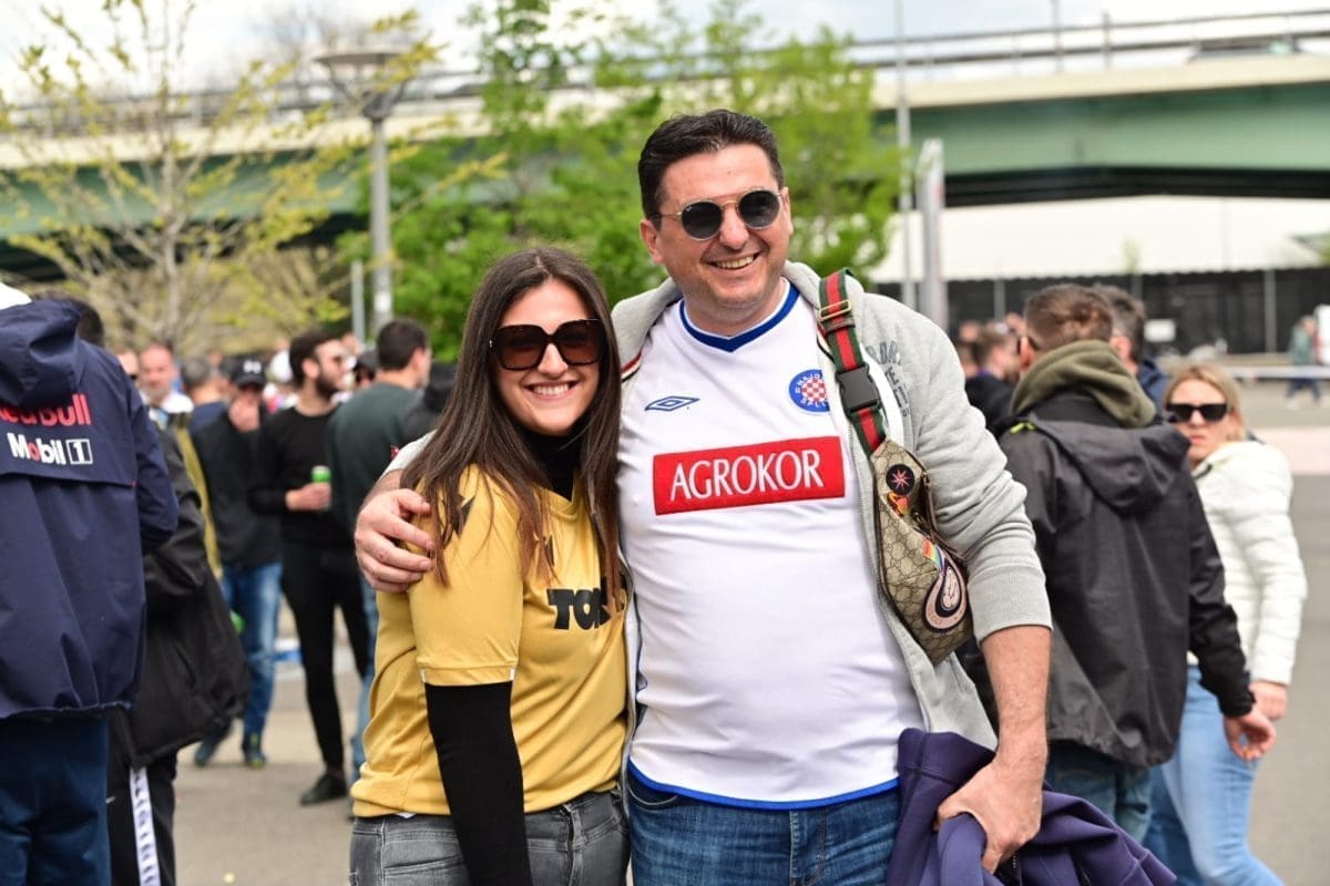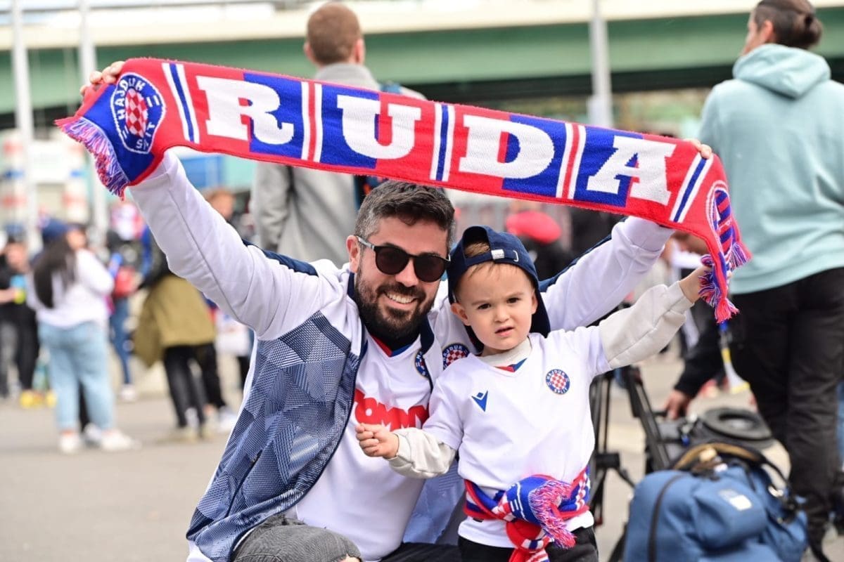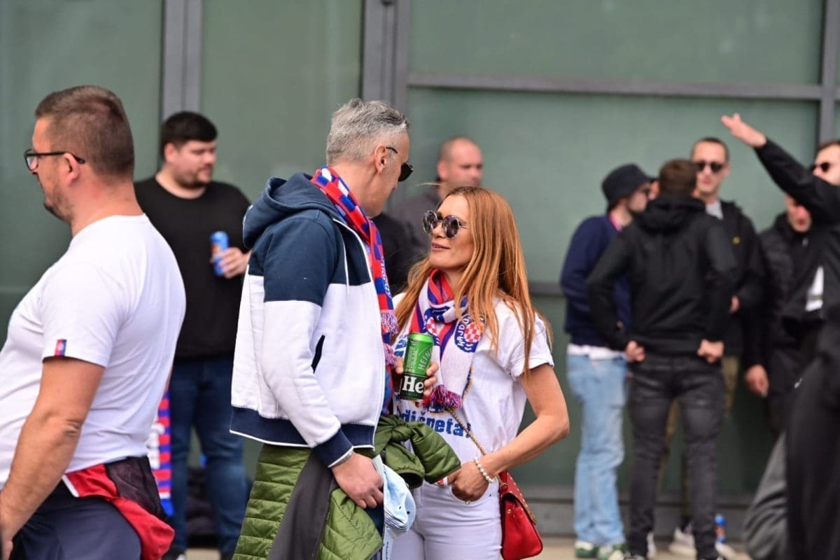 Vesela je atmosfera u Ženevi ispred stadiona. Kao da se igra na Poljudu, sve je puno navijača splitskog Hajduka. Pjevaju se pjesme, pale se baklje...