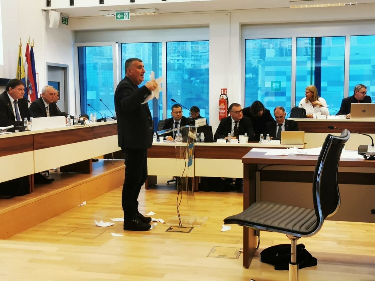Nakon pauze Miro Bulj je pred predsjednikom Županijske skupštine iskidao amandmane MOST-a.