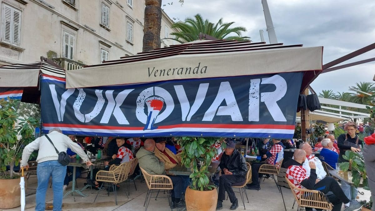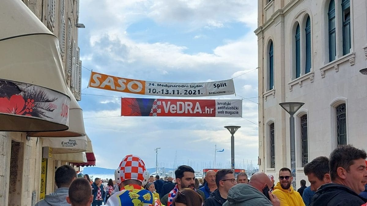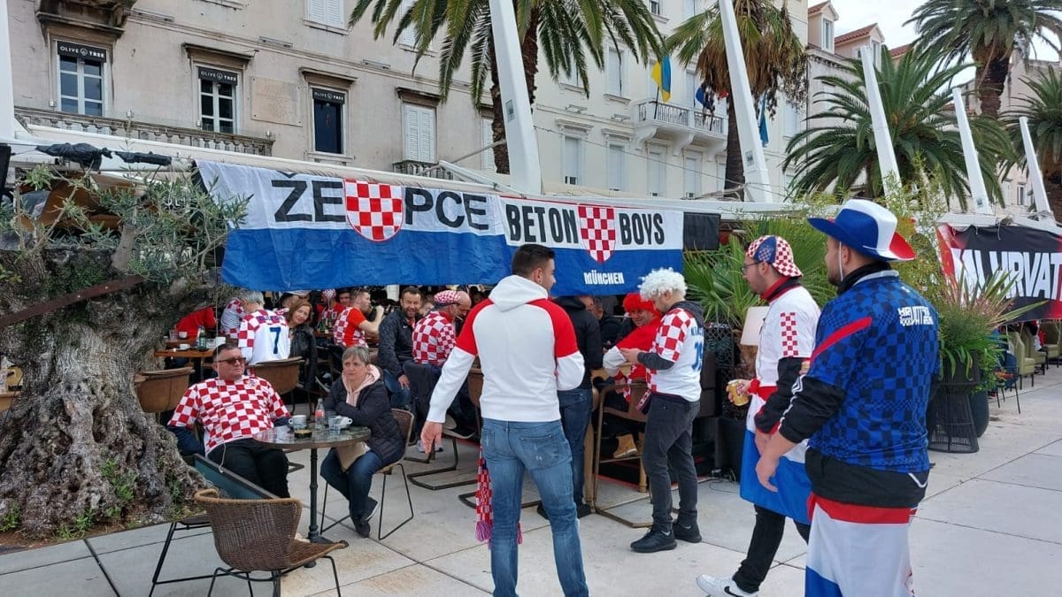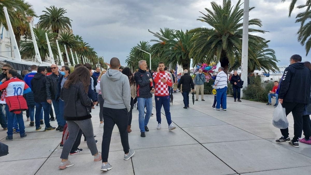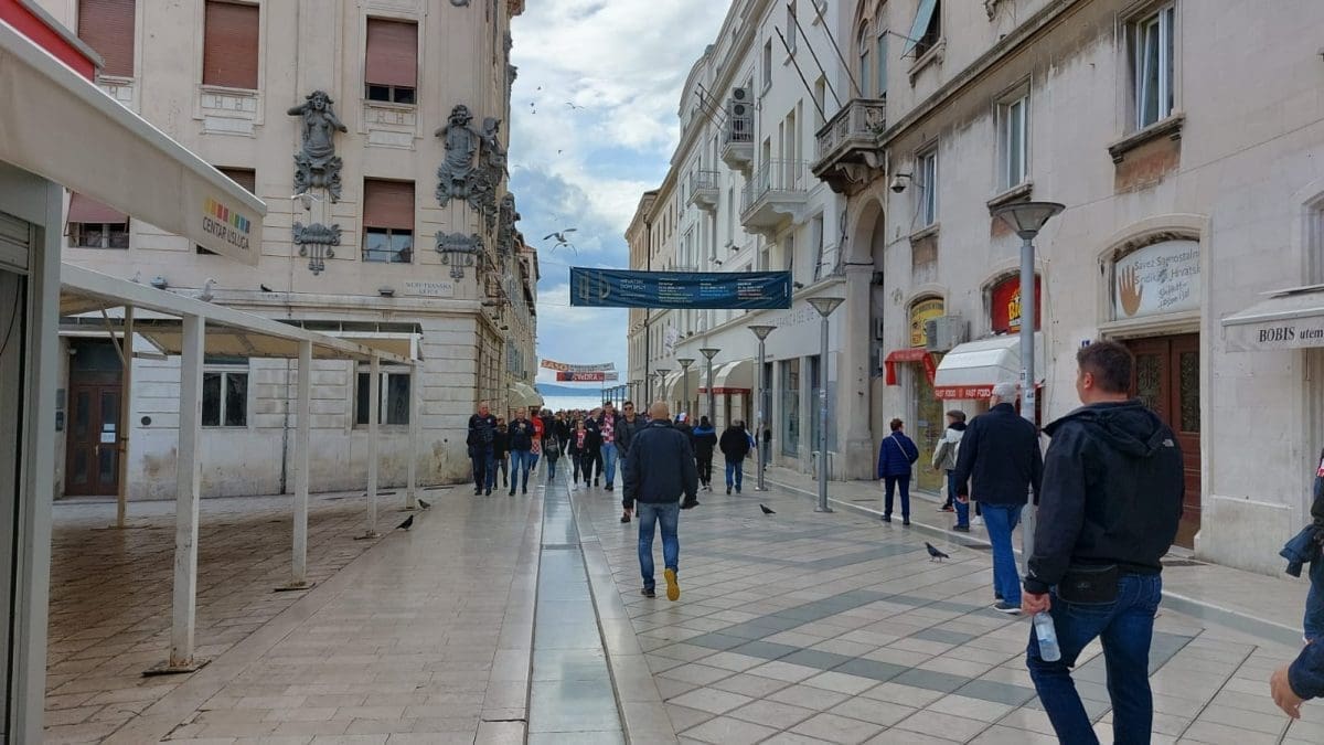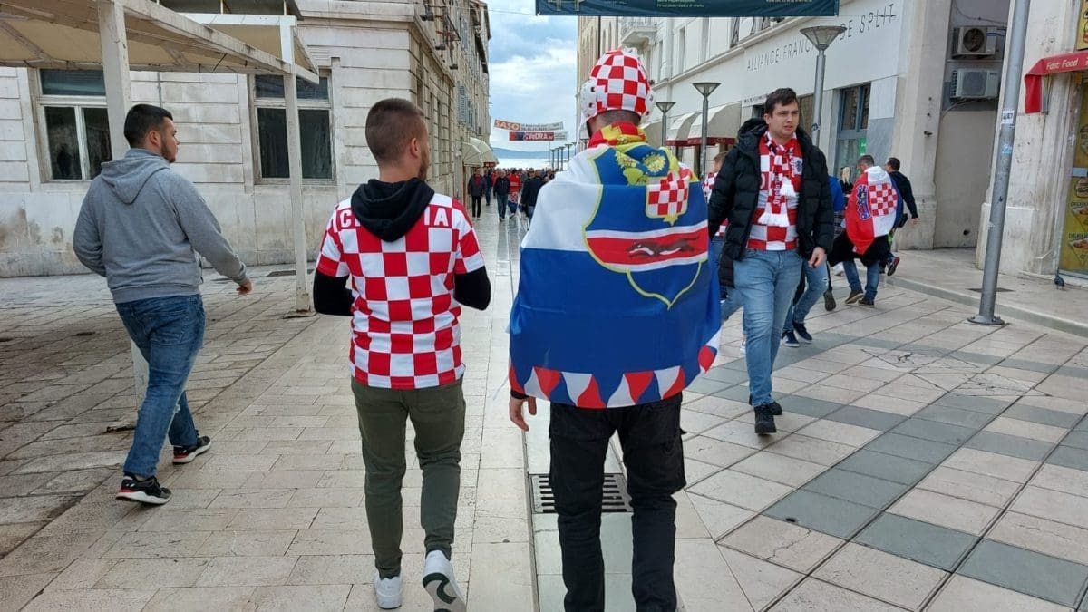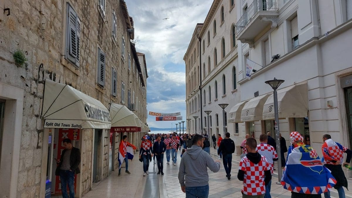 Navijačka euforija se može vidjeti, ali i čuti u centru Splita. Utakmica se igra danas s početkom u 15 sati na Poljudu, a velika euforija vlada među Splićanima.