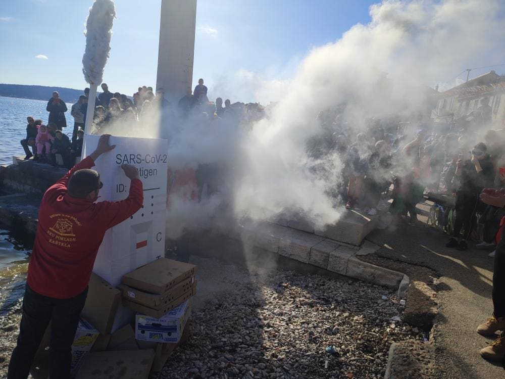 Uz pjesmu i ples zapalili su i dječjeg krnju koji je ove godine bio antigen test ili antigenko, te mu pročitali testament.