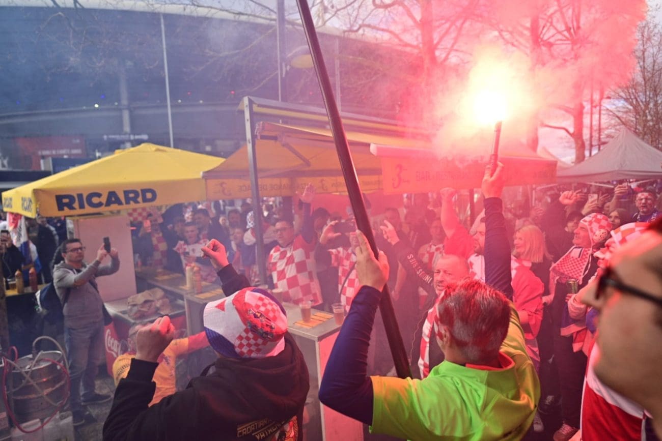 Oduševljenje na ulicama Pariza je neizmjerno. Tisuće hrvatskih navijača pjevaju, plešu i slave. Zastave, majice, kape i šalovi s hrvatskim grbom preplavili su poznate pariške lokacije, stvarajući pravi spektakl. Uvijek vedri, hrvatski navijači svojim su prisustvom i energijom učinili grad još živahnijim.