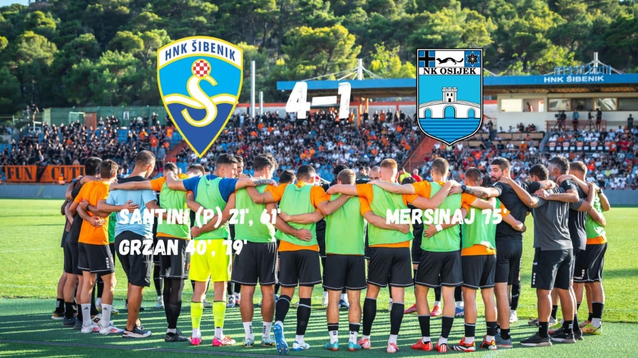 Nogometaši Šibenika i Osijeka danas su od 18:45 igrali na Šubićevcu posljednju utakmicu 28. kola SuperSport HNL-a. Kao neočekivani pobjednik iz dvoboja izišao je Šibenik koji je slavio nad Osijekom s visokih 4:1. Mrežu su za Šibenčane tresli Santini iz penala u 21. minuti, a onda i u 61. minuti, a dva je pogotka dodao i Gržan, u 40. i 79. minuti. Utješni je pogodak za Osječane zabio Mersinaj u 75. minuti.
