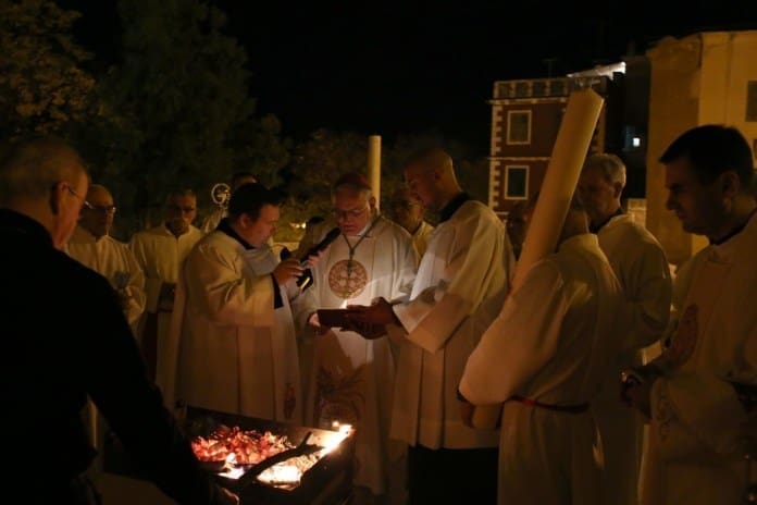 Šibenski biskup Tomislav Rogić na Veliku subotu 20. travna predvodio je obrede Vazmenoga bdijenja u katedrali svetog Jakova u Šibeniku.