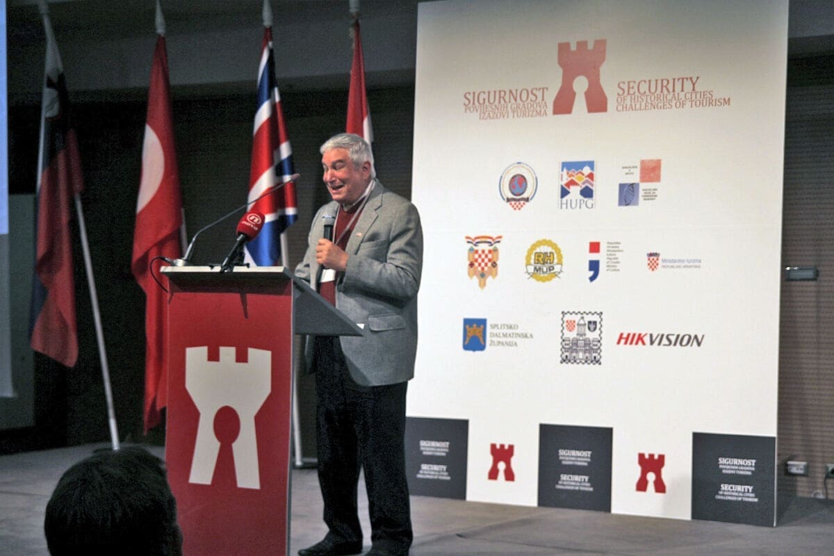 Potom je govorio jedan od predavača, dr. Peter E. Tarlow iz SAD-a. On je osnivač i predsjednik američke udrugeTourism & more. Tarlow je poznati govornik i stručnjak specijaliziran na području utjecajakriminala i terorizma na turističku industriju te za upravljanje rizicima u turizmu i gospodarstvu, a u svom predavanju se dotaknuo izazova povijesnih gradova u uvjetima turizma.