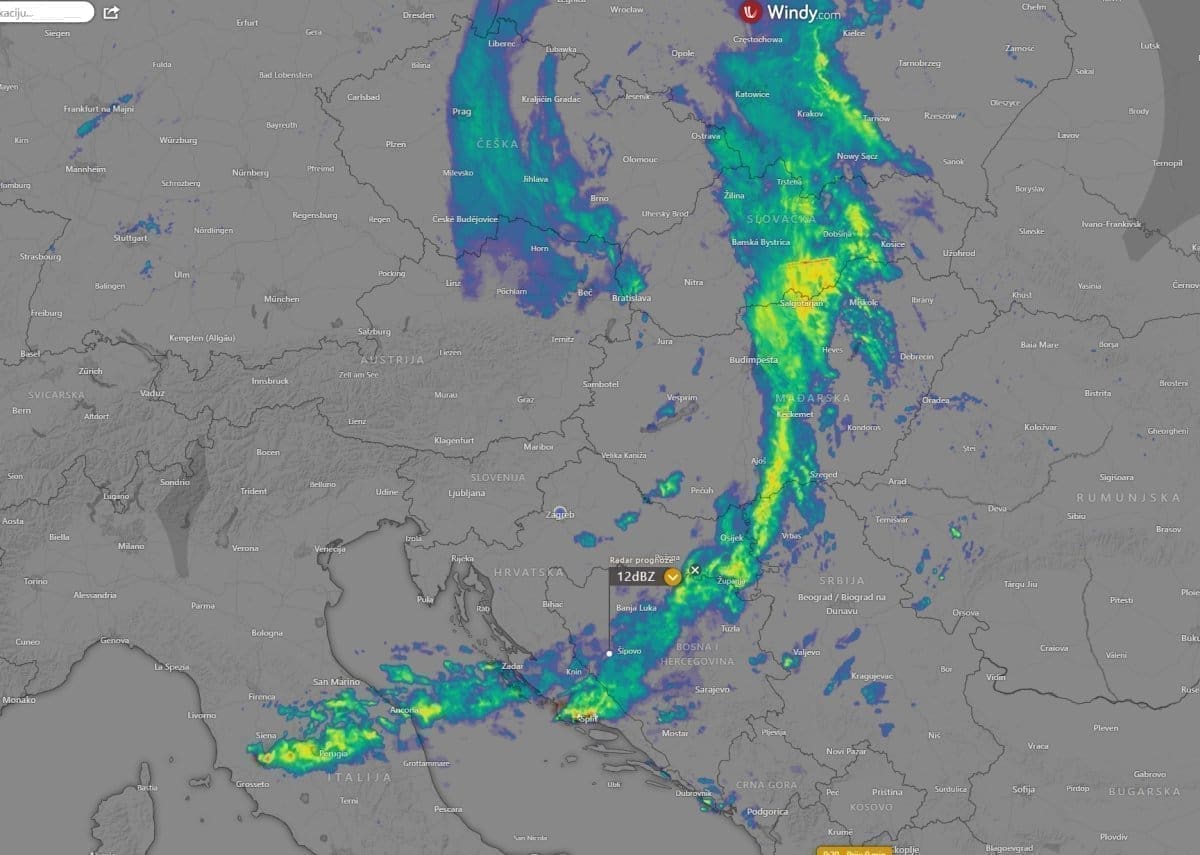 Frontalni sustav proteže se od Poljske do Italije, a sredinom jutra zahvatio je i područje srednje Dalmacije.