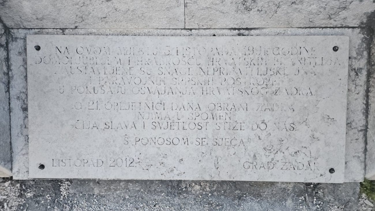 Na ovom mjestu sjećamo se svih onih koji su svoje živote dali za slobodu Zadra i Hrvatske, njihovih suboraca i obitelji.