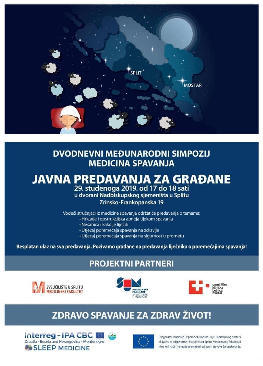U sklopu EU projekta prekogranične suradnje IPA-Interreg "Sleep Medicine" održat će se dvodnevni međunarodni završni simpozij u Splitu 29. i 30. studenog 2019. godine.
