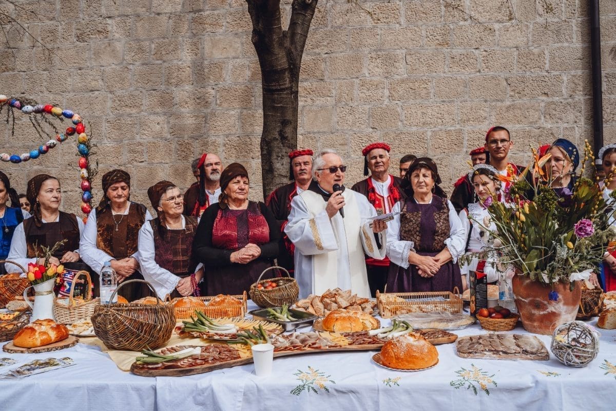 Nakon pozdravnih govora Mira Bulja, gradonačelnika grada Sinja i Monike Vrgoč, direktorice Turističke zajednice grada Sinja, blagdanski stol blagoslovio je fra Marinko Vukman, gvardijan i upravitelj Svetišta Čudotvorne Gospe Sinjske.