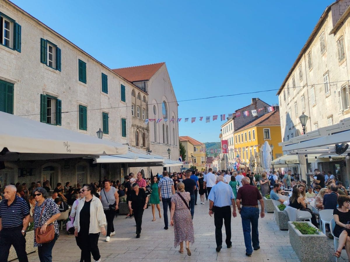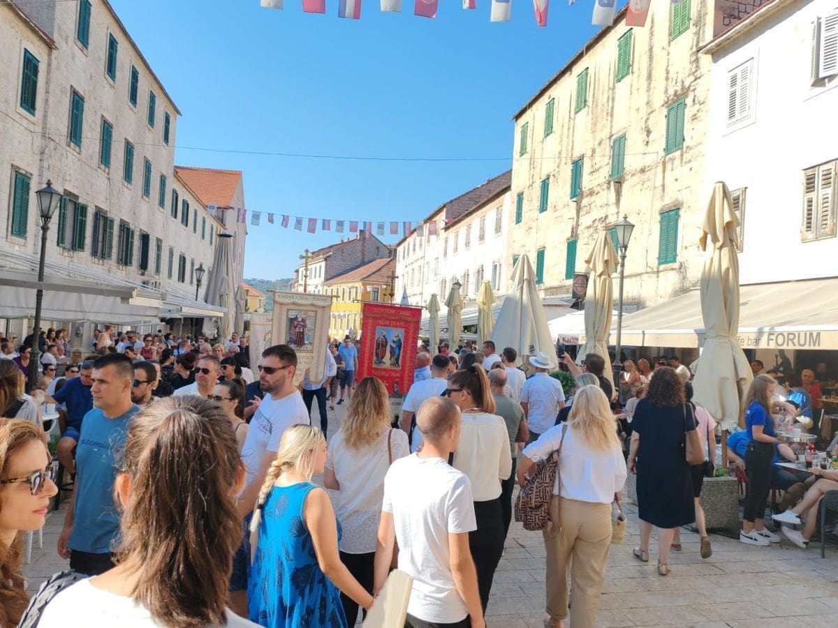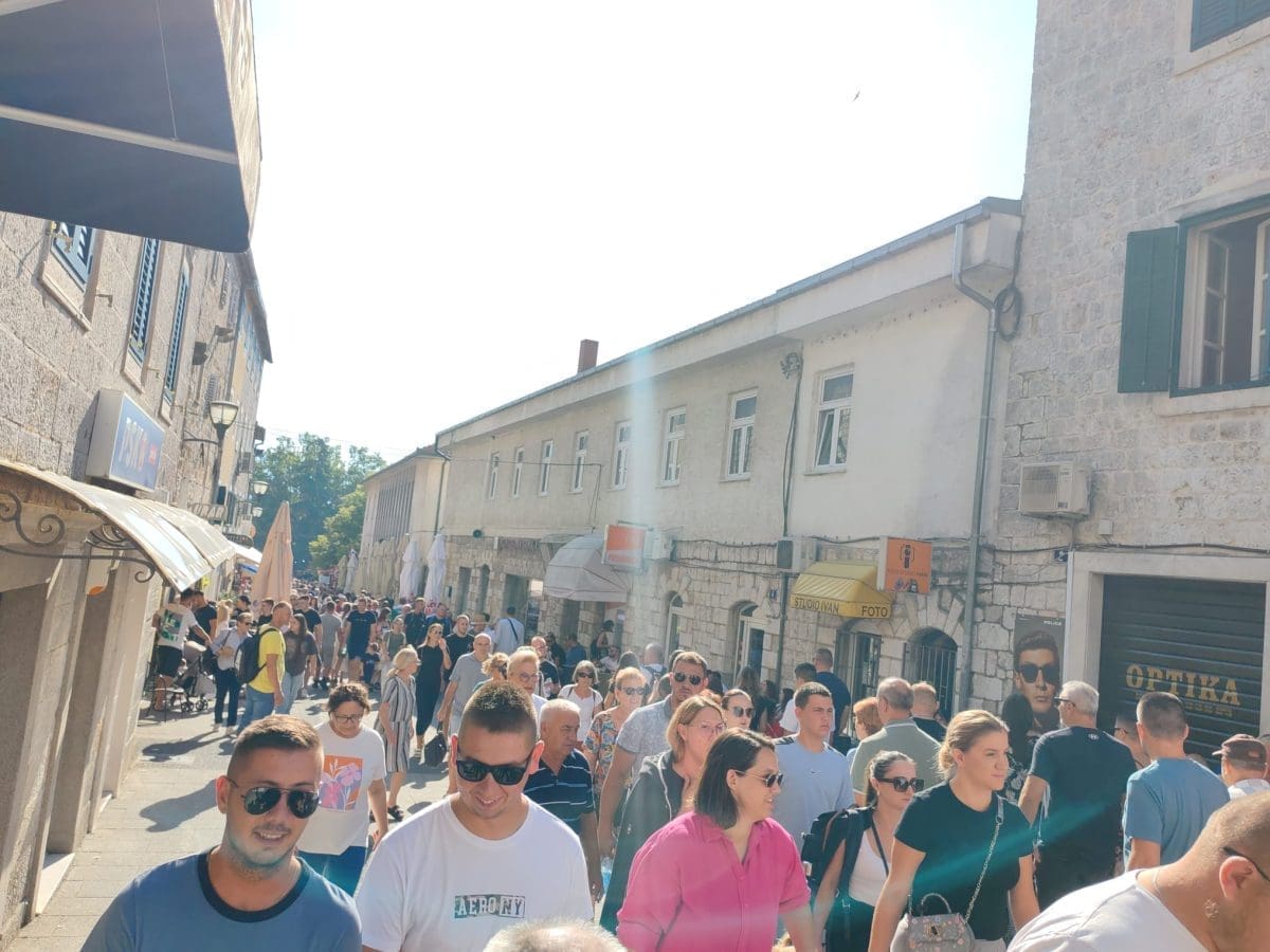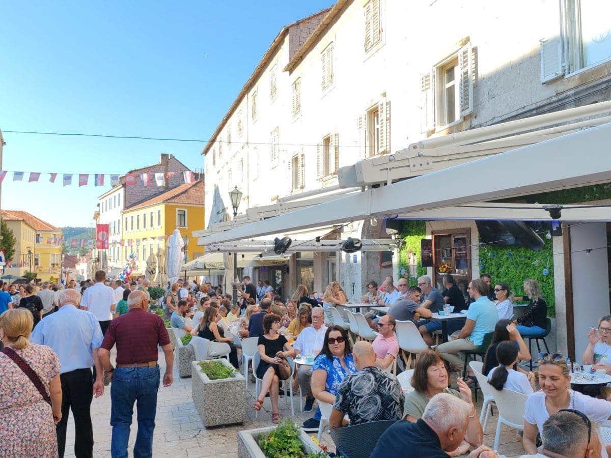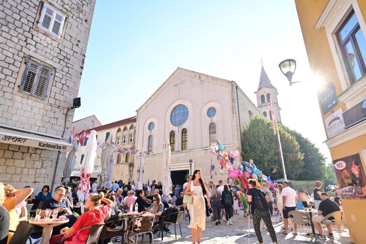 Od ranog jutra je velika gužva u Sinju. Centar grada već je prepun, a u ugostiteljskim objektima ispred crkve ne može se naći slobodno mjesto.