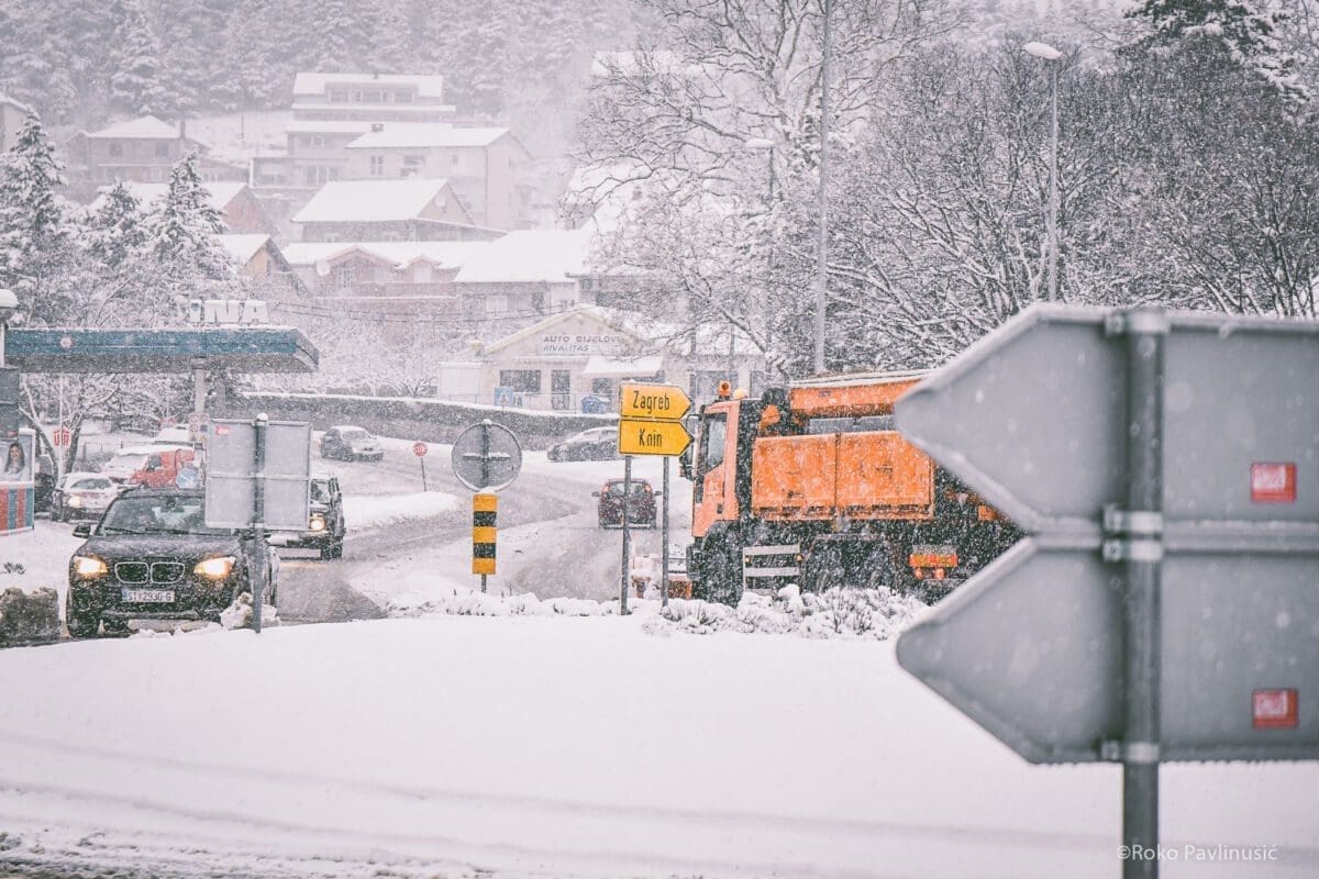 Snijeg se potom proširio na Zagoru, gdje je mjestimice bio vrlo obilan. Primjerice, u Hrvacama je u samo dva sata palo 20 centimetara snijega. Tek nešto malo manje palo je u gradu Sinju. Dok je rano jutros u Sinju izmjereno 8 stupnjeva ispod nule, temperatura je danju lagano rasla i u ranim večernjim satima stigla do 0°C. Tako se i Zagora od "minusa" oprašta na neko vrijeme.