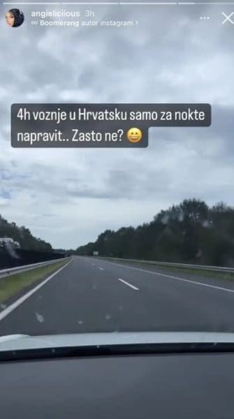 Čini se da je Anđela jako zadovoljna svojom kozmetičarkom kad zbog nje putuje toliko dugo. Na Instagramu je podijelila fotografiju iz auta i kako putuje autocestom po tmurnom vremenu.