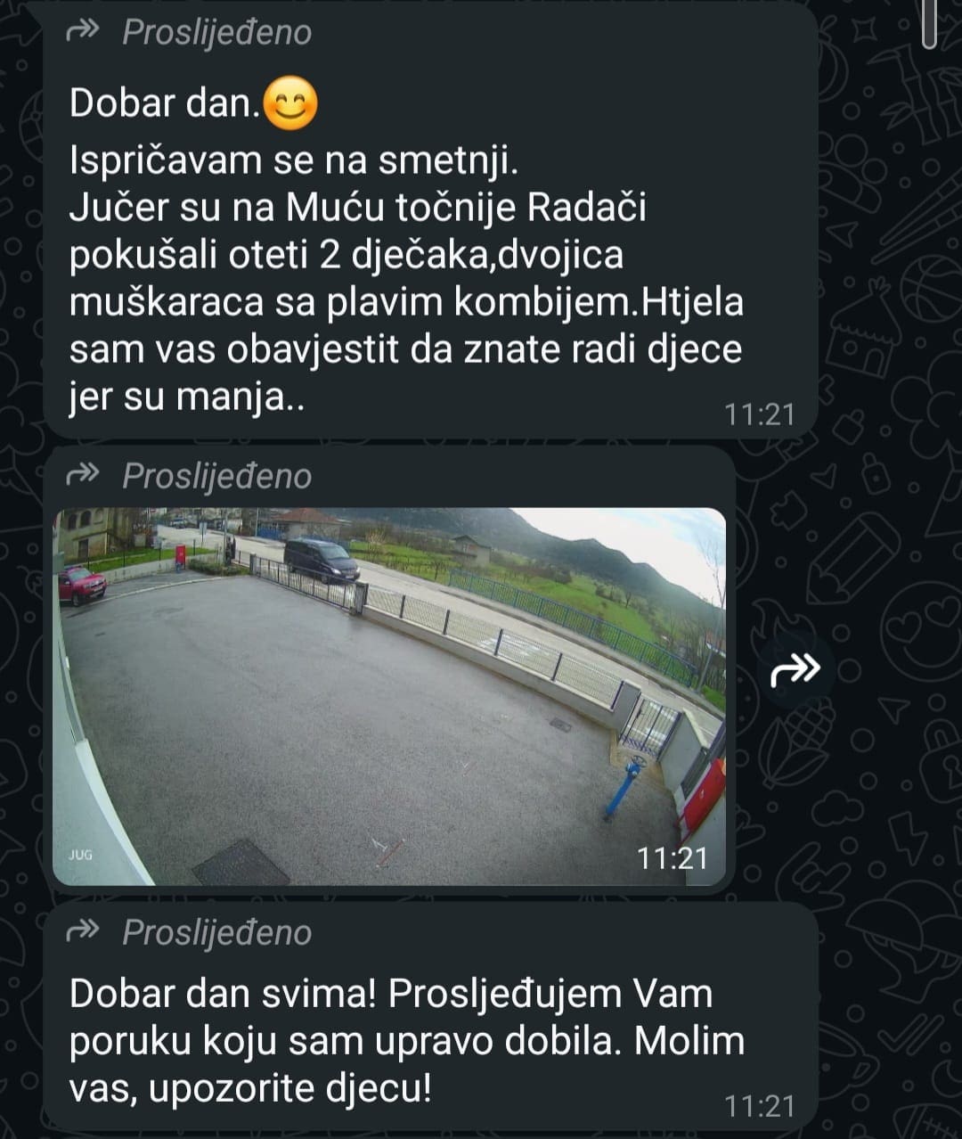 Internetom i Whatsapp grupama šire se poruke o pokušaju otmice djece na području Muća. Širi se i navodna snimka kombija u kojemu je bio muškarac, kao i tvrdnje da je pokušao djecu namiti u vozilo bomobinama. Neki navode da je muškarac nosio i fantomku.
