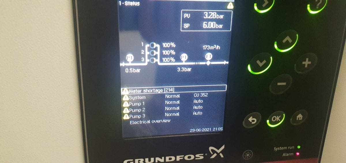 Predviđeni minimalni tlak isključivanja crpki je predviđen na 1 bar, no on je reduciran na 0,4 bara da bi se izbjeglo stalno isključivanje zbog nedostatka vode. Očito ni to ne pomaže.