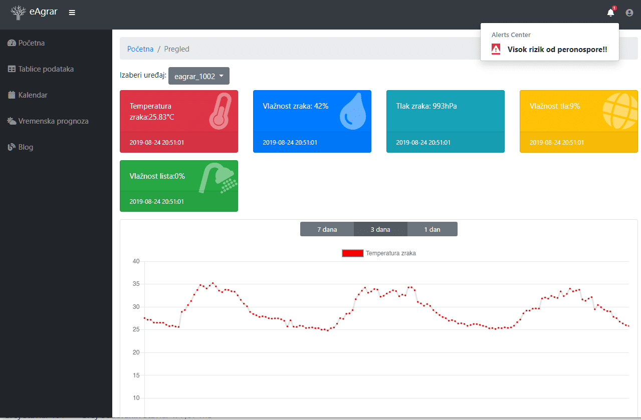 - Imamo pozitivne priče. Primjerice, jedan od korisnika je OPG Moro iz Sinja koji se bavi ekološkom proizvodnjom povrća. Postavili su naše uređaje u polje i prije nekih mjesec i pol dana u 4h ujutro im je eAgrar dojavio da postoji mogućnost za pojavu mraza. Oni su otišli u polje i korištenjem prskalica uspjeli spasiti njihovo povrće od smrzavanja. Zahvaljujući pravovremenoj obavijesti uspjeli su produžiti sezonu branja za više od mjesec dana. eAgrar je uistinu postao najbolji prijatelj poljoprivrednika i motri na usjeve čak i kada on spava.