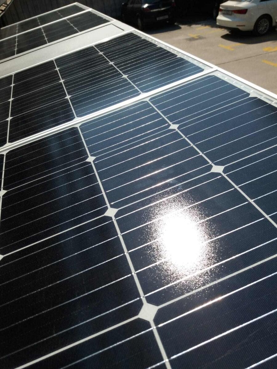 Proizvod se odlikuje specifičnošću obrade čelične konstrukcije po normi EN 10027 koju obrađujemo u tri zasebne faze (galvanizacija-čišćenje, pocinčavanje i plastificiranje). S našim partnerima, tvrtkama Adria-Cink Split i Metallux Vrgorac, nakon završne obrade konstrukcije istu sklapamo i radimo završne radove (ugradnja solarnih panela, regulatora, baterije, USB utičnica, stakala, klupe...) na lokaciji Put Brodarice 2, u zgradi pogona Končar. FN moduli koje ugrađujemo su snage 650W, pametni regulatori napona MPPT 100/50 i Victron AGM baterije od 160Ah do 220Ah daju nam snagu i sigurnost da solarna pametna stanica može raditi i do 5 dana bez sunčeve energije. Čak smo obradili i našu klupu za sjedenje u jedinstveni materijal - drvo cumaru koje se svojom kvalitetom, bojom i specifičnošću koristi u najluksuznijim jahtama kao završno drvo za palube i klupe.