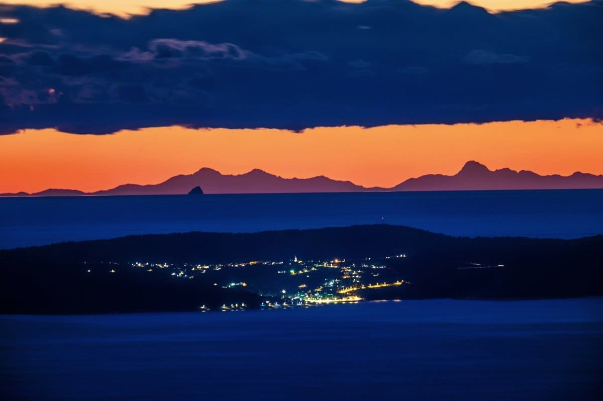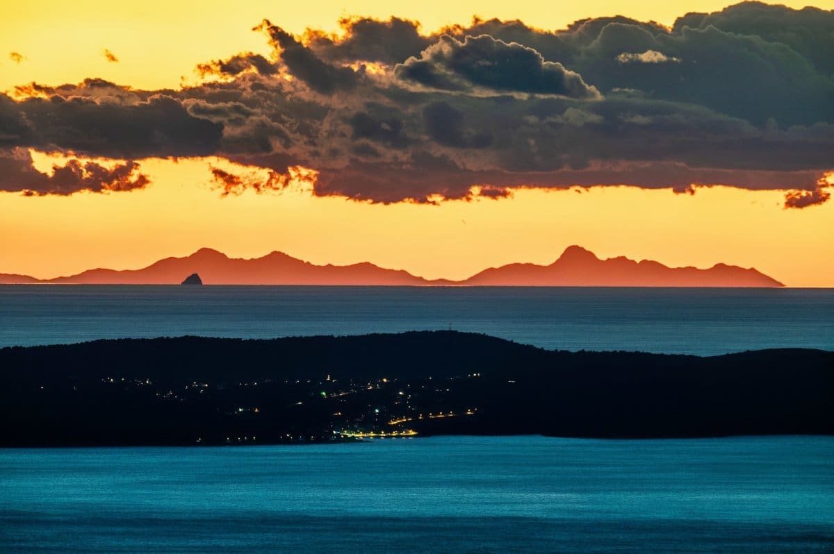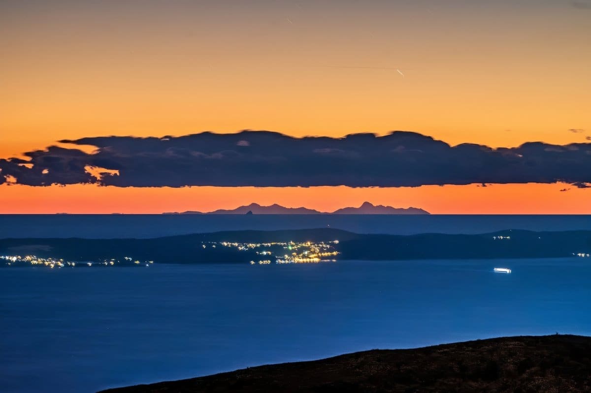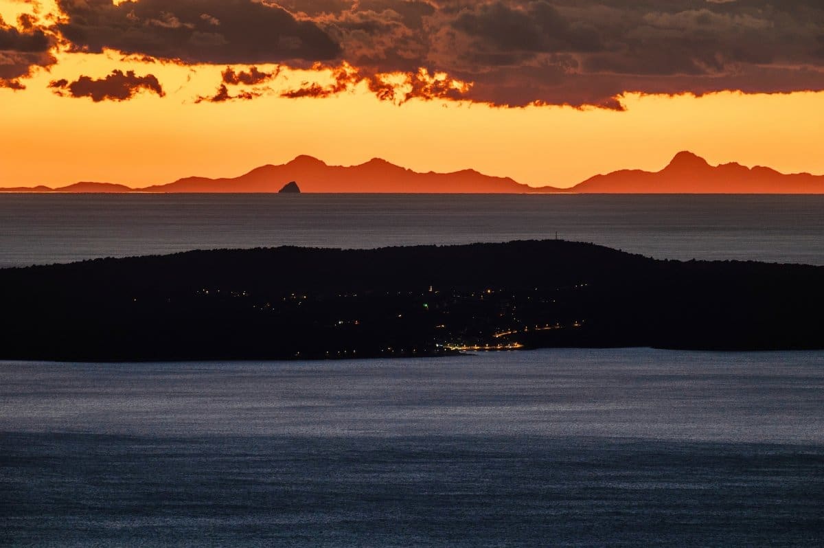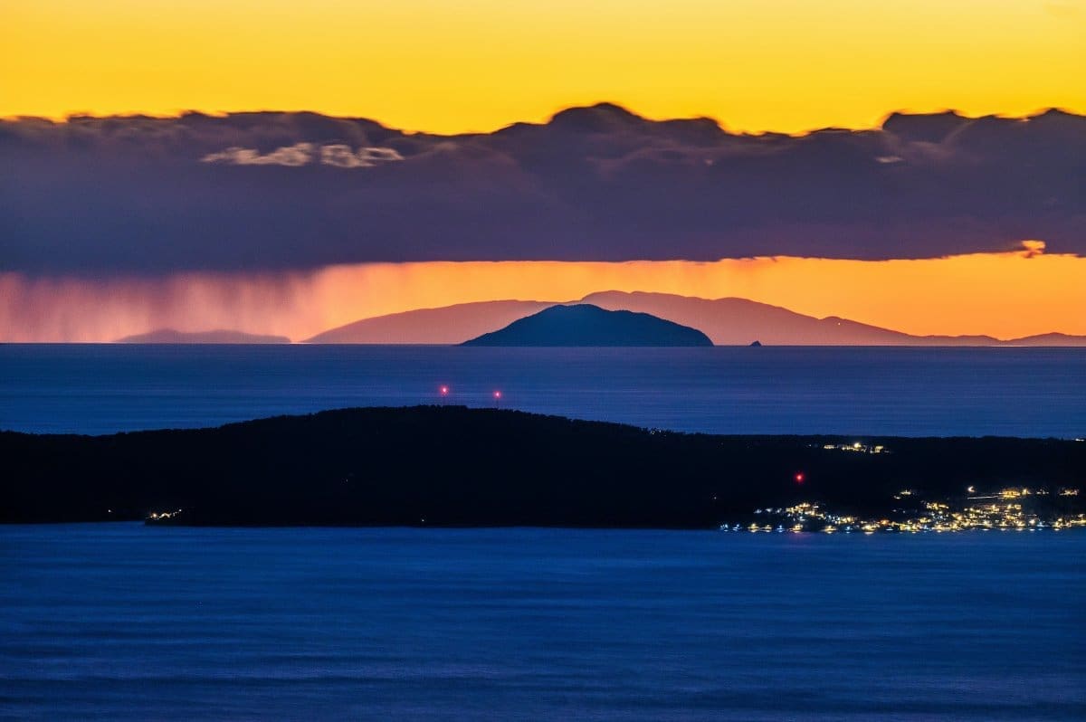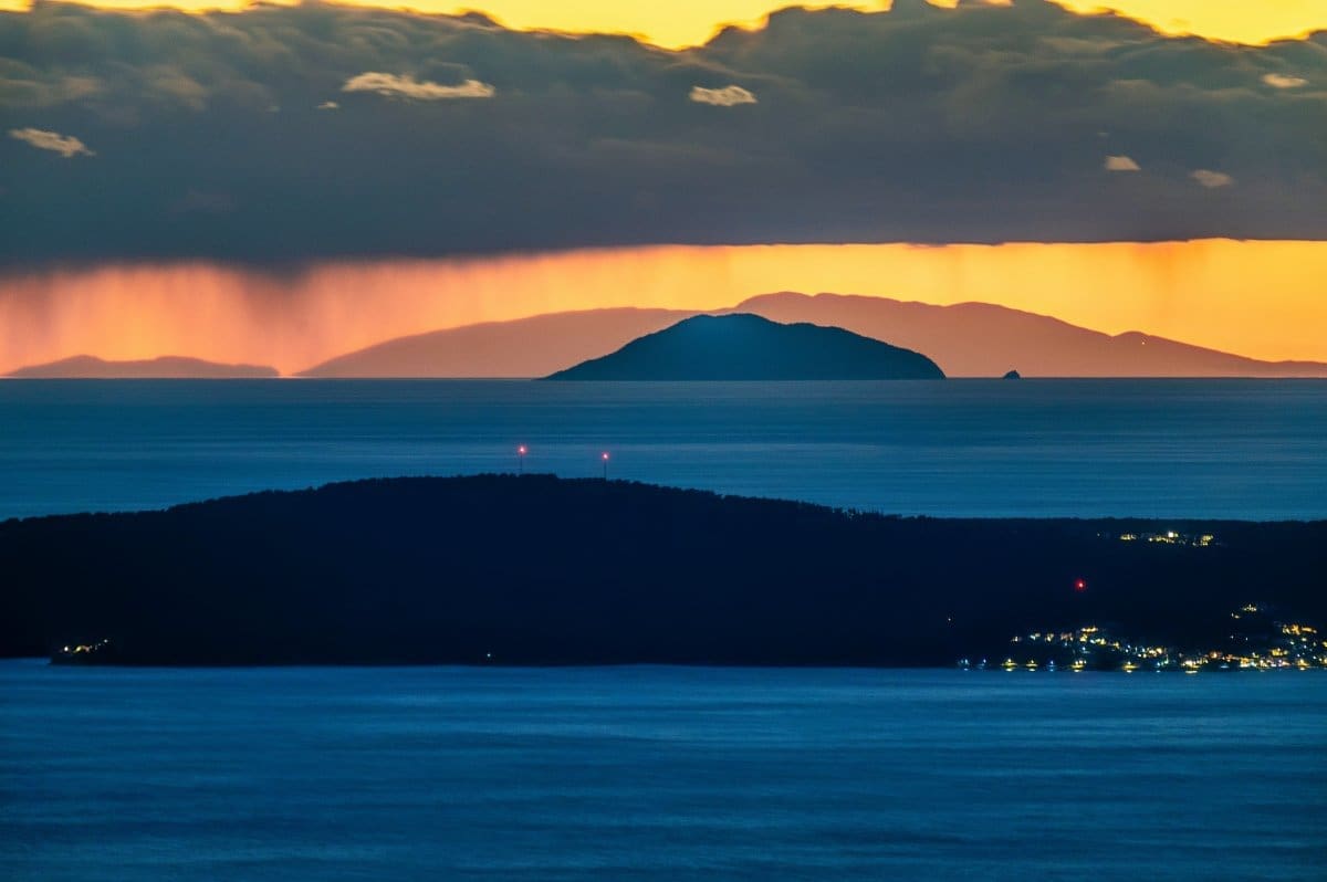 Bura je tijekom srijede uzrokovala savršenu vidljivost, a u suton se s obalnih planina i otoka na horizontu savršeno vidjela Italija, tj. Apenini.
