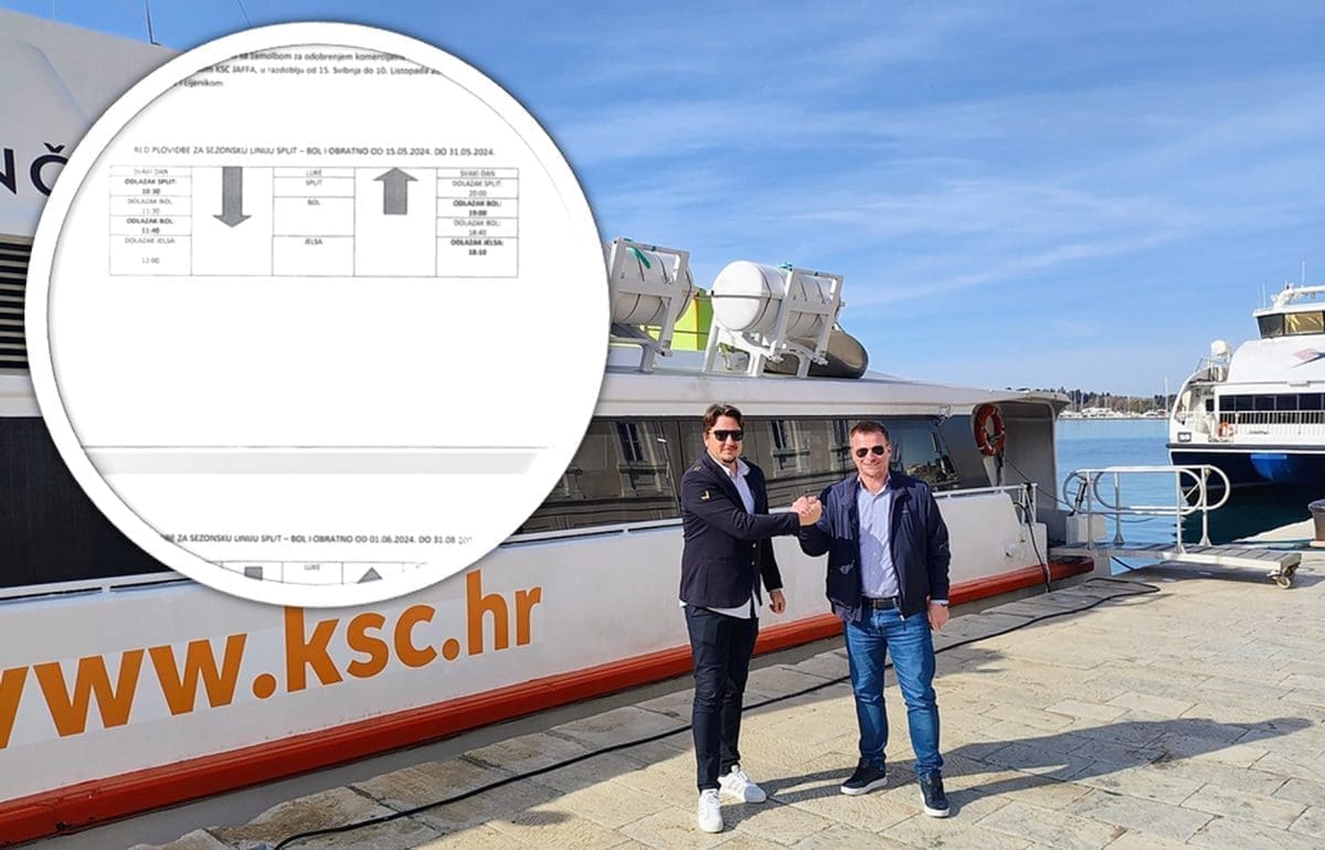 "Nakon dugih pregovora i razgovora koje sam vodio sa Brodarom Krilo shipping company d.o.o. i sa direktorom Jurom Narančom, a uz asistenciju Agencije za linijski promet, dogovorena je jedna komercijalna katamaranska linija Split-Bol-Jelsa, sa polaskom iz Splita oko 11.45h i povratkom u Split oko 18 h, a točni red plovidbe možete vidjeti u objavi.