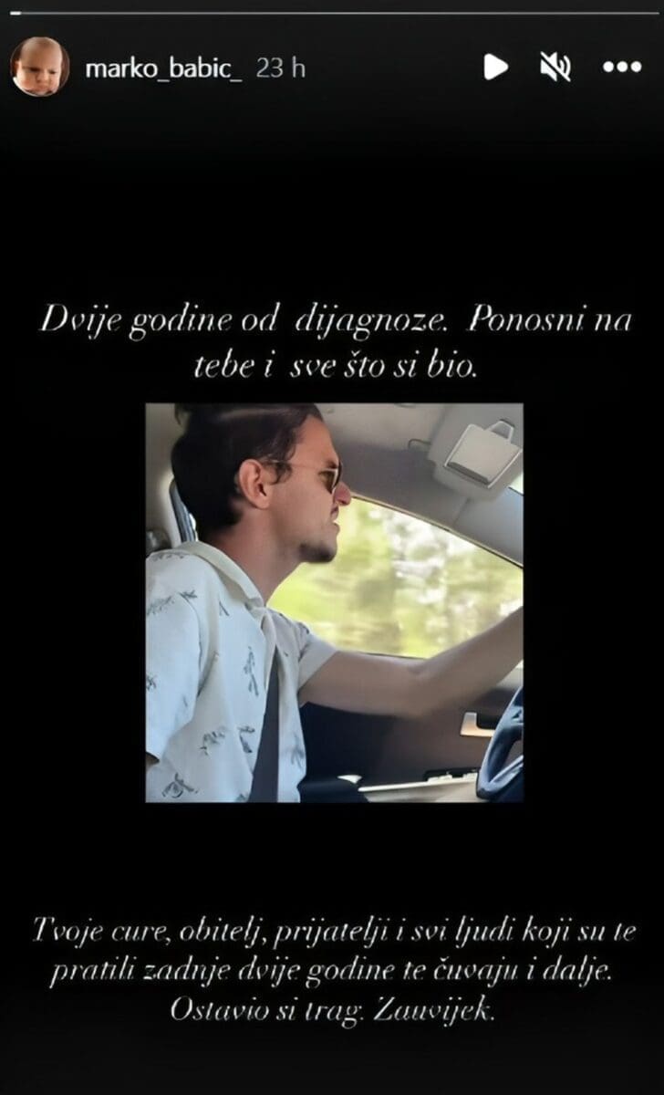 "Dvije godine od dijagnoze. Ponosni na tebe i sve što si bio. Tvoje cure, obitelj, prijatelji i svi koji su te pratili zadnje dvije godine te čuvaju i dalje. Ostavio si trag. Zauvijek", piše u opisu snimke u kojoj pokojni Marko pjeva Oliverovu pjesmu "Galeb i ja", a zatim se prikazuje i niz njegovih snimki s djecom, prijateljima i partnericom Tinom, piše Dnevnik.hr.