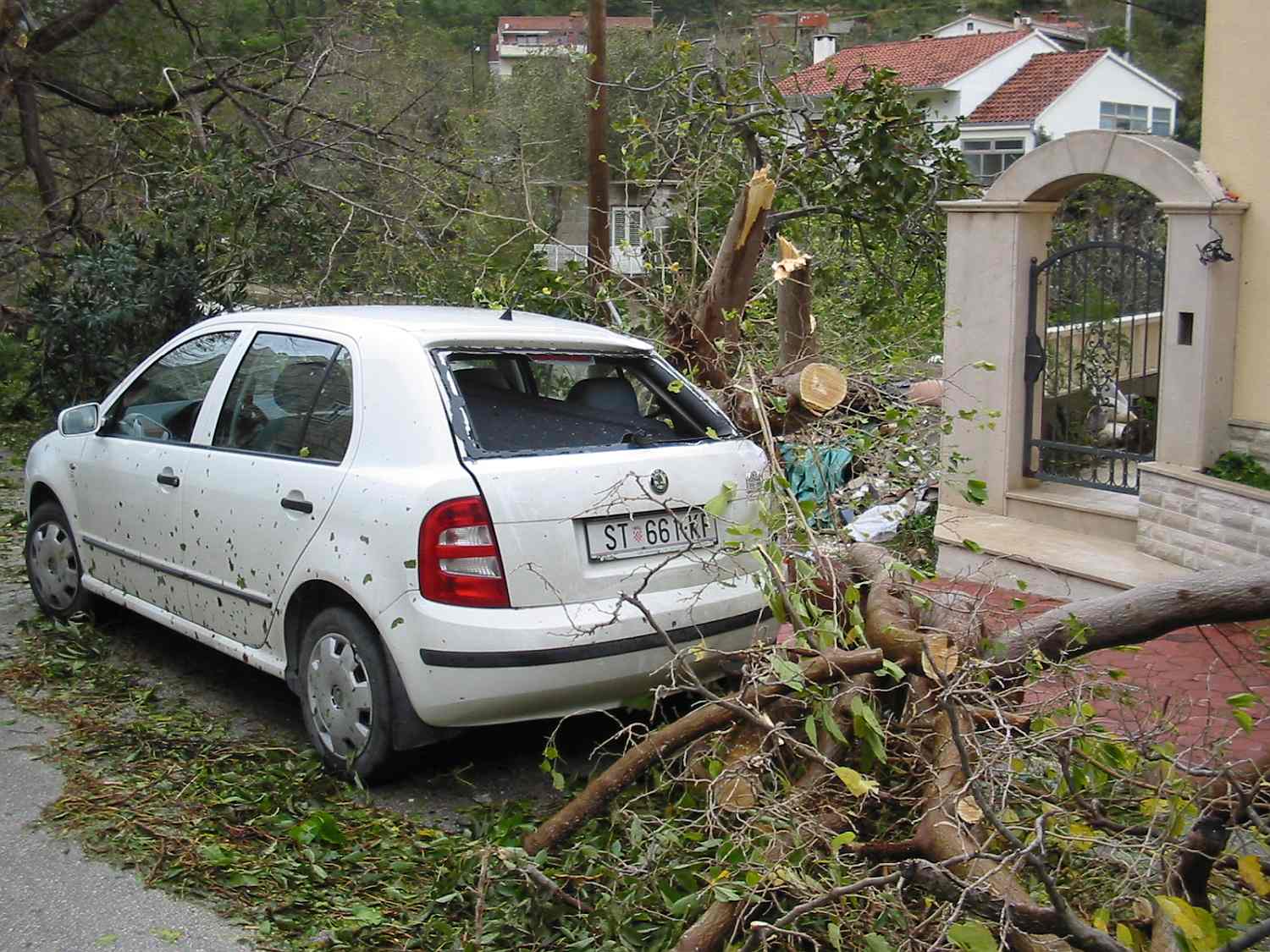 Pogledajte kako se nevrijeme manifestiralo na istoku Splita! U Žrnovnici su uništeni skoro svi čempresi na groblju, a neki su grobovi doslovno izletjeli iz zemlje. Bura i korijenje palog čempresa oštetili su i grobnicu legendarnog Miljenka Smoje. Stabla su padala po cestama, oštećeni su krovovi kuća, brojni automobili...