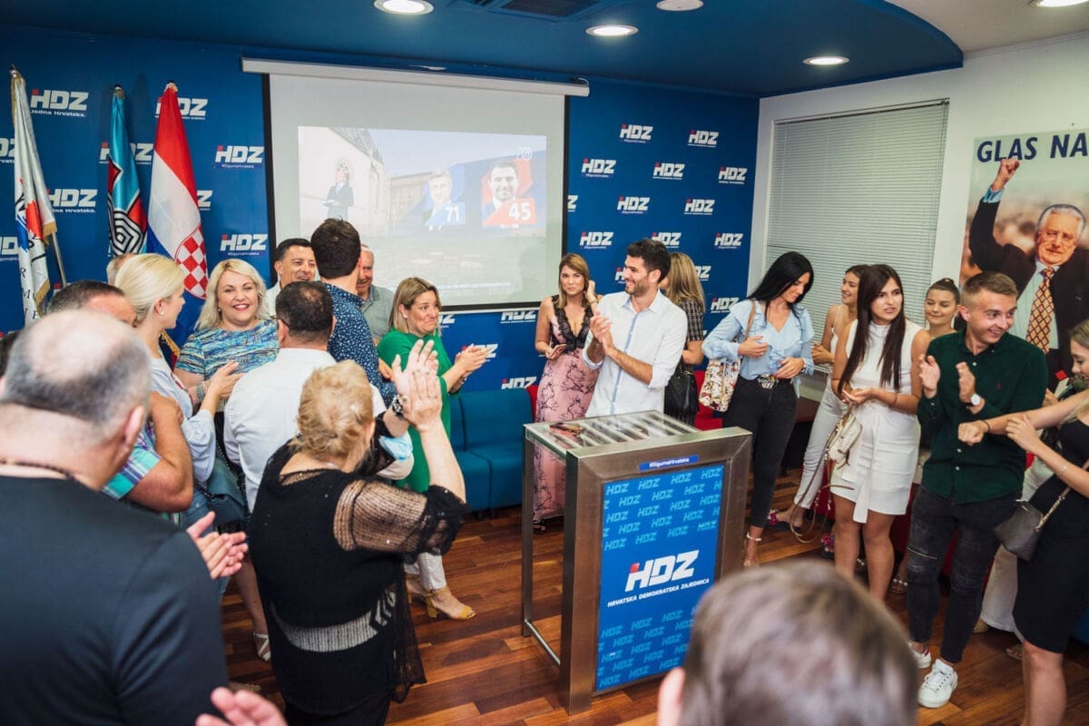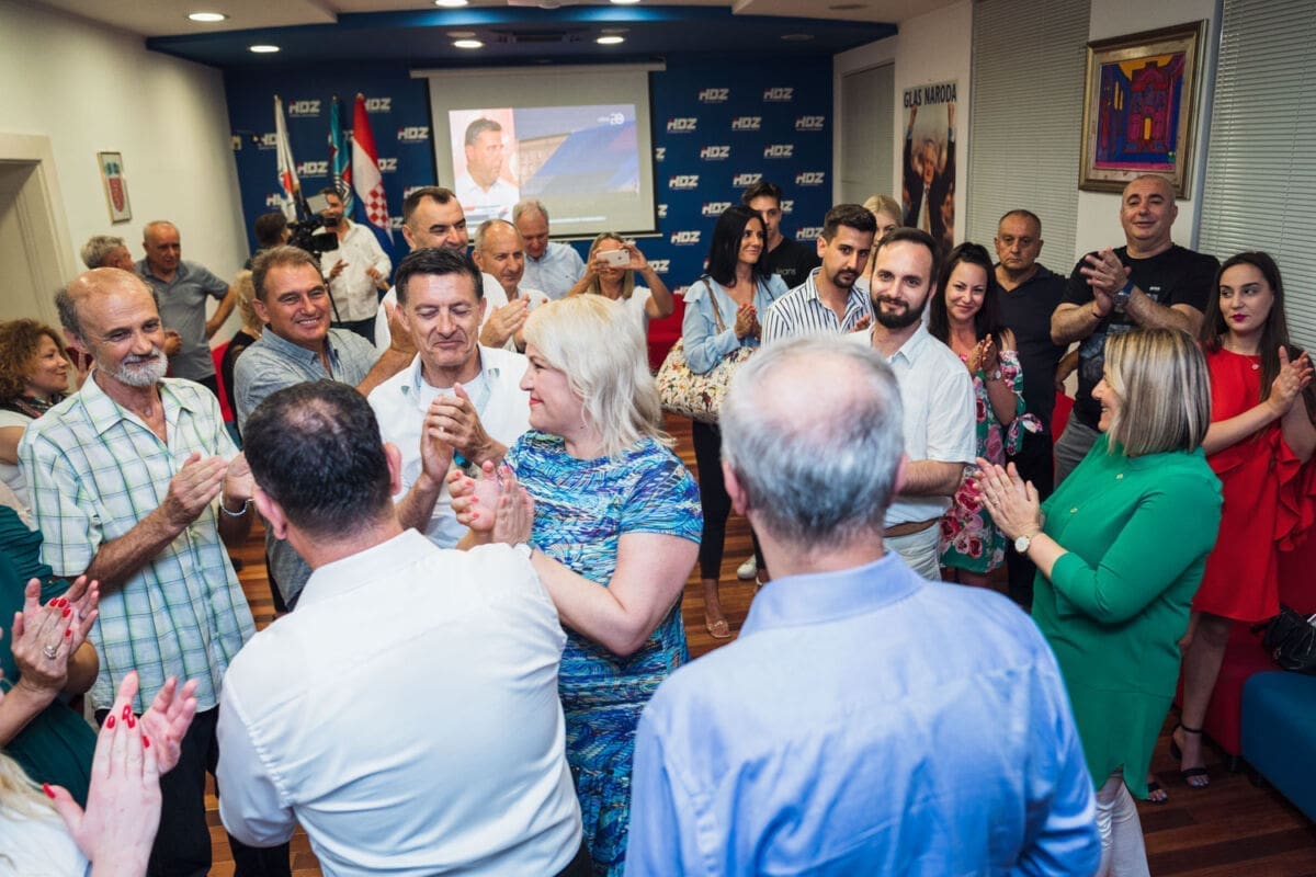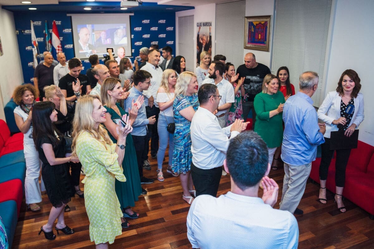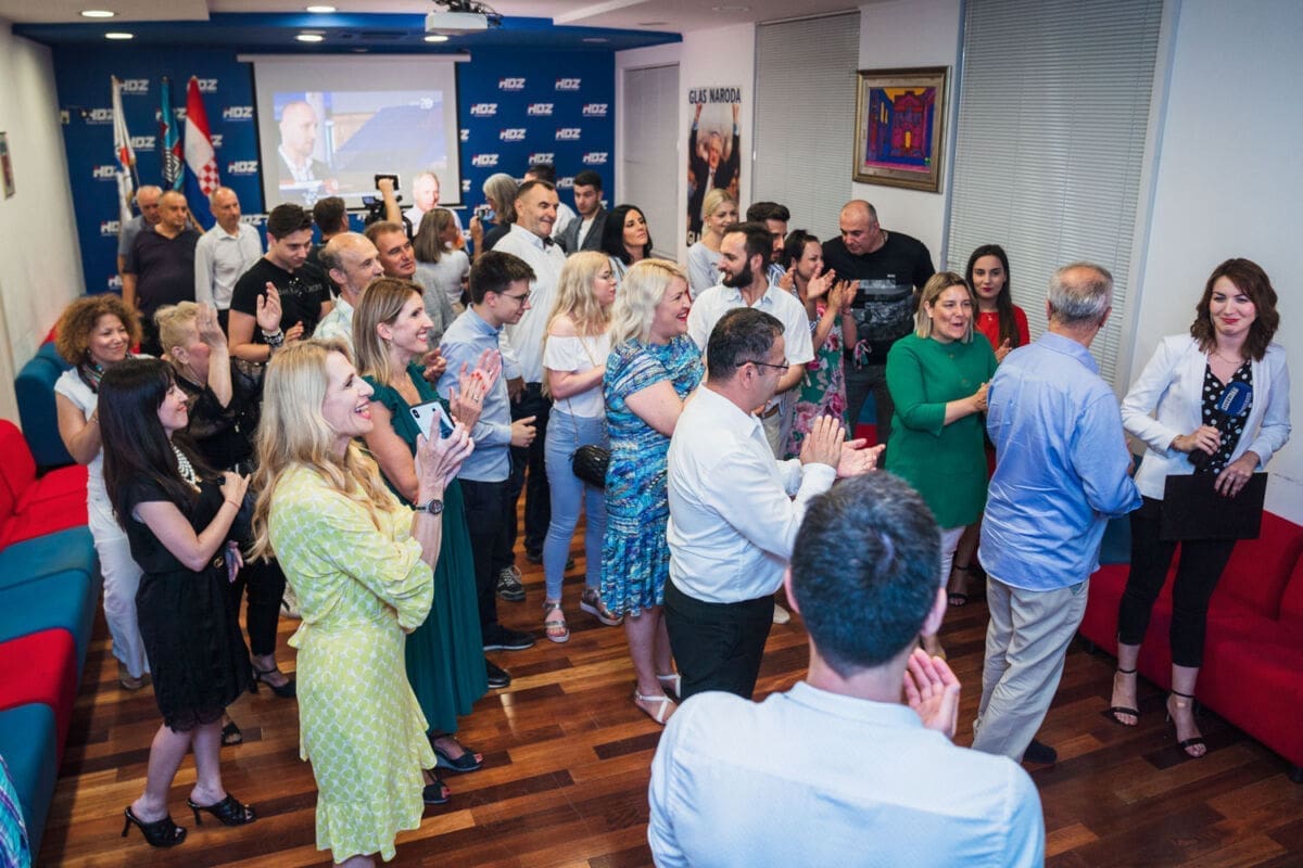 U središnjici HDZ-a u Splitu nije bilo Vilija Beroša, ali su slavili župan Blaženko Boban, gradonačelnik Splita Andro Krstulović Opara, Ante Sanader, Ante Mihanović, Ante Bačić i brojni drugi.