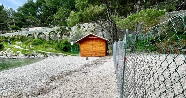 Uz plažu Valdarke na Velom Lošinju nikla je metalna ograda, a pored ograde netko je montirao drvenu kućicu. Posjetitelje plaže na ogradi je još dočekao i natpis "privatni posjed".