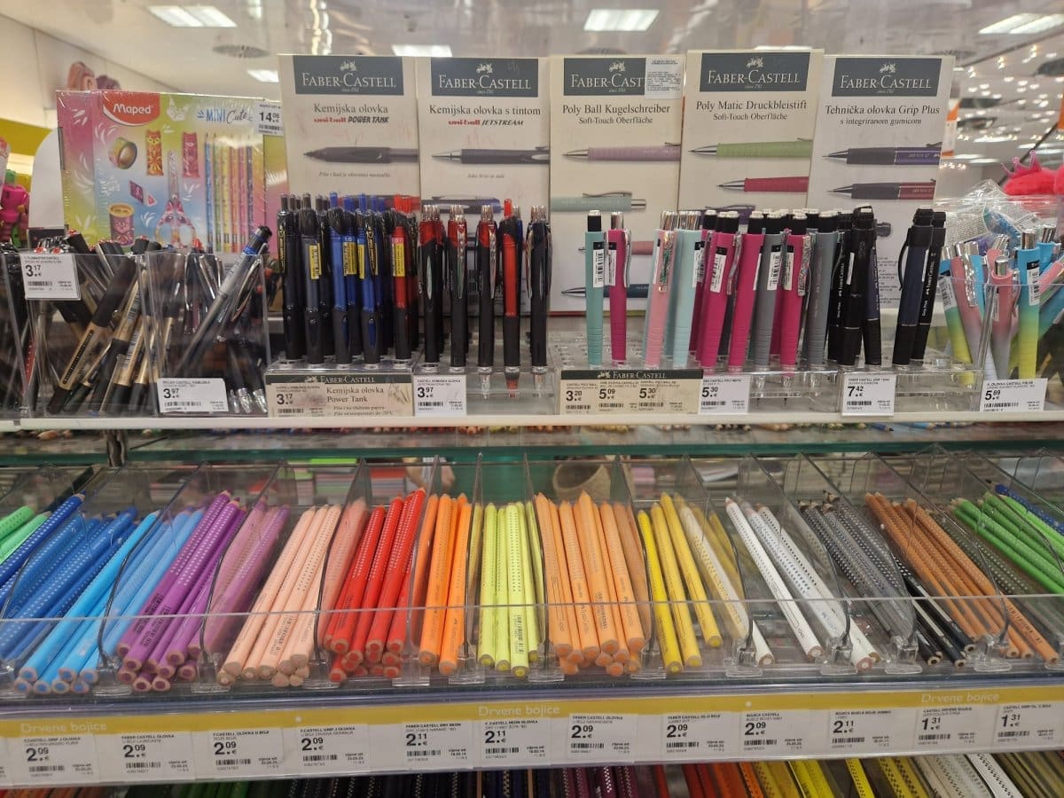 Cijena grafitnih olovaka kreće se od 0,99 do 2,11, tehničkih od 0,79 do 9,59 eura. Cijena drvenih bojica 12 komada iznosi od 2,79 eura do 13,96 eura dok pakovanje od 24 komada ide od 6,89 eura.