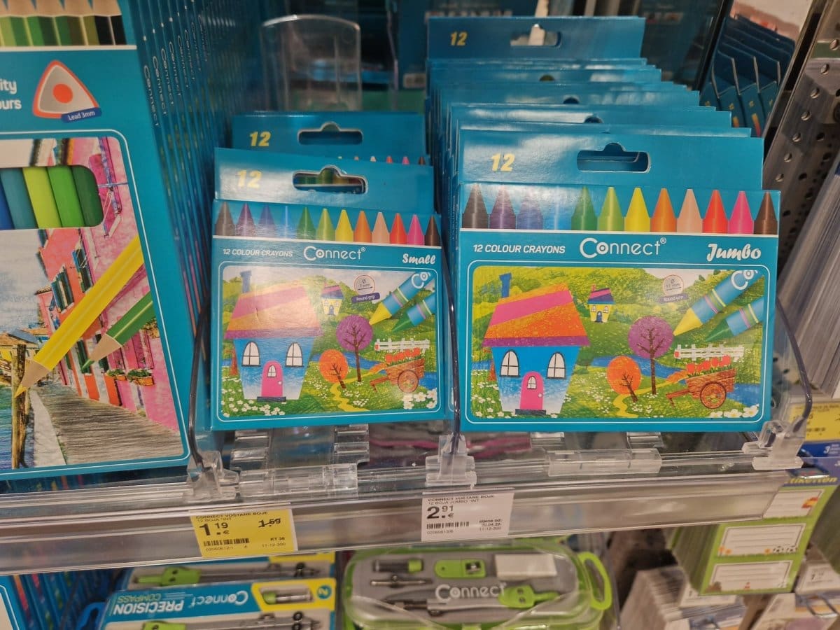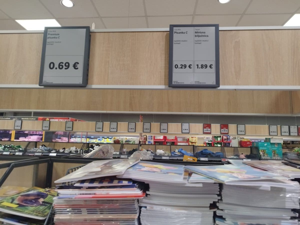 Najpovoljnije crtančice stoje 0.29 eura ali su im korice tanke kao i papir unutra, one malo 'tvrđih' korica su 0,69 eura. Cijene pisanki su od 1,29 eura do 1,59 eura.
