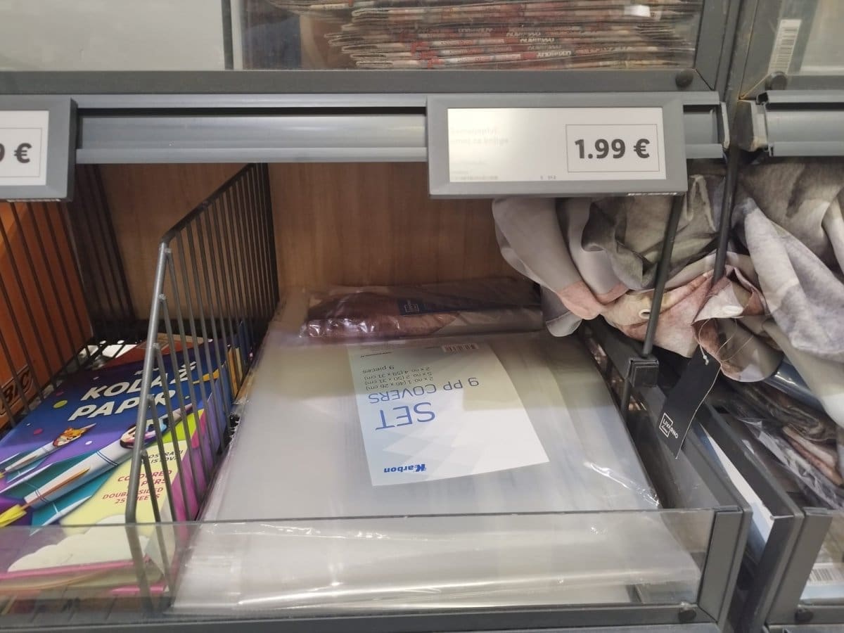 Samoljepljivi omoti za knjige od 9 komada koštaju 1,99 eura, a omoti se mogu kupiti u knjižarama po veličini udžebnika (klasični omoti) od 0,60 do 0,94 eura, a u nekim knjižarama i papirnica možete čak donijeti sve udžbenike i radne bilježnice, ostaviti ih da ih vrijedne ruke tih prodavačica omotaju i vi kasnije samo pokupite i platite.
