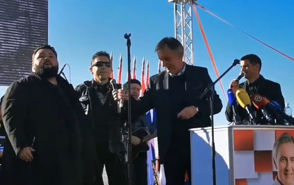 Na preidzbornom skupu koji je Miroslav Škoro u subotu održao u splitskoj Lori, pjevač je za kraj s Jacquesom Houdekom, Tihom Orlićem i Markom Pecotićem otpjevao svoju pjesmu "Ne dirajte mi ravnicu".